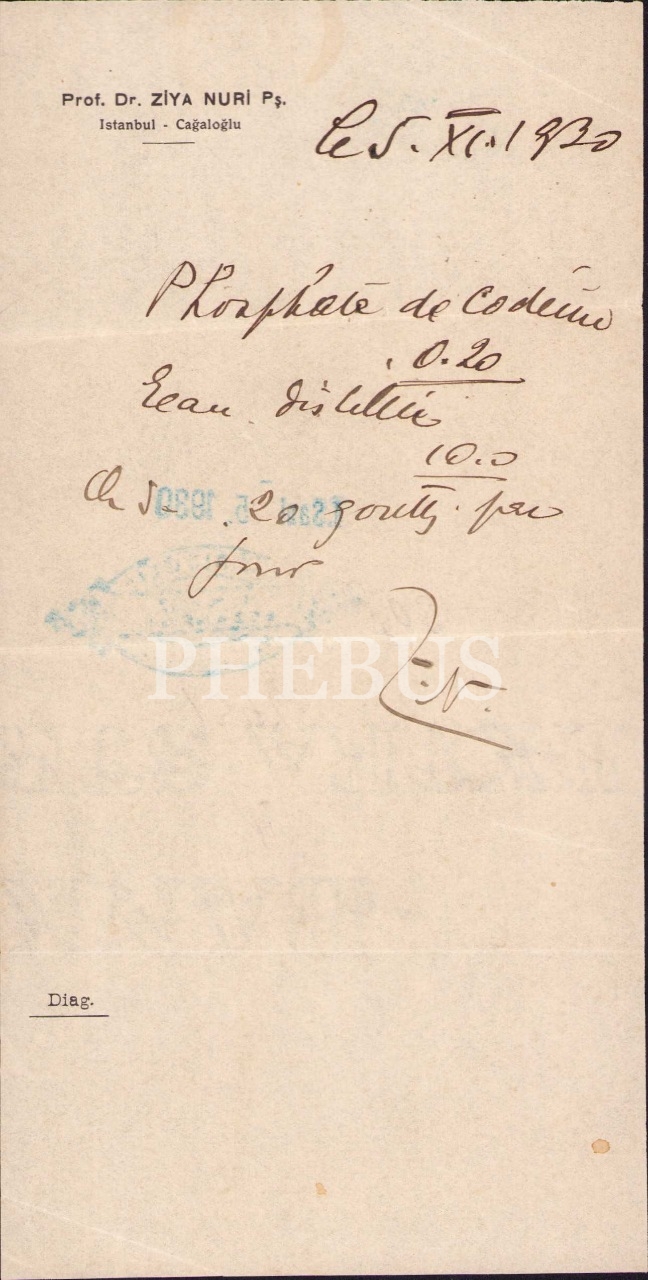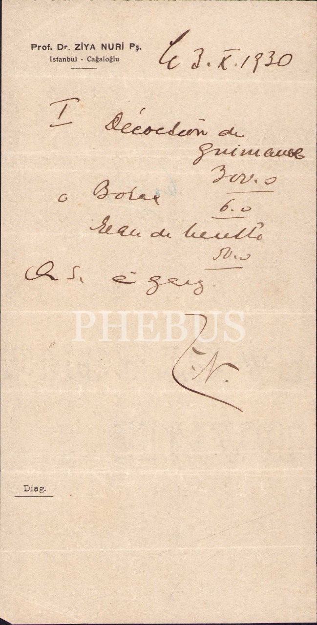 Prof. Dr. Ziya Nuri - İstanbul Cağaloğlu antetli iki adet reçete, 11x21 cm