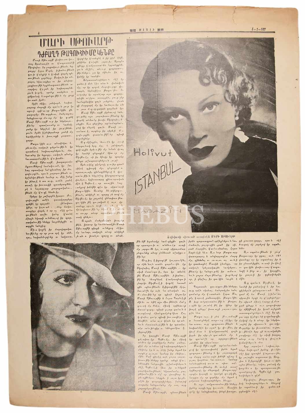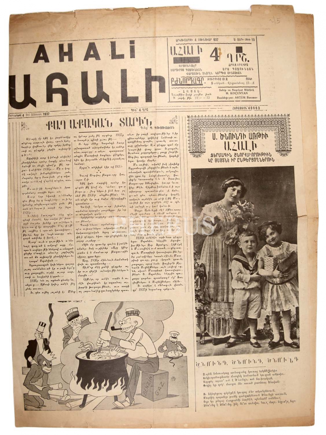 Ermenice Ahali gazetesi, 4 Kanunu 1937, 4 sayfa, 40x60 cm