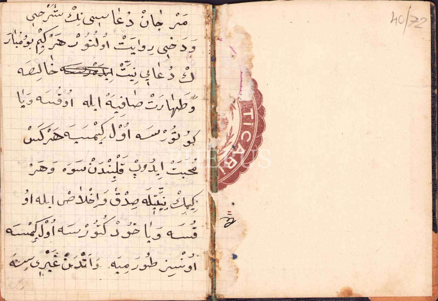 Osmanlıca Mercan Duasının şerhi, el yazması defter, 20 sayfa, 10x12 cm