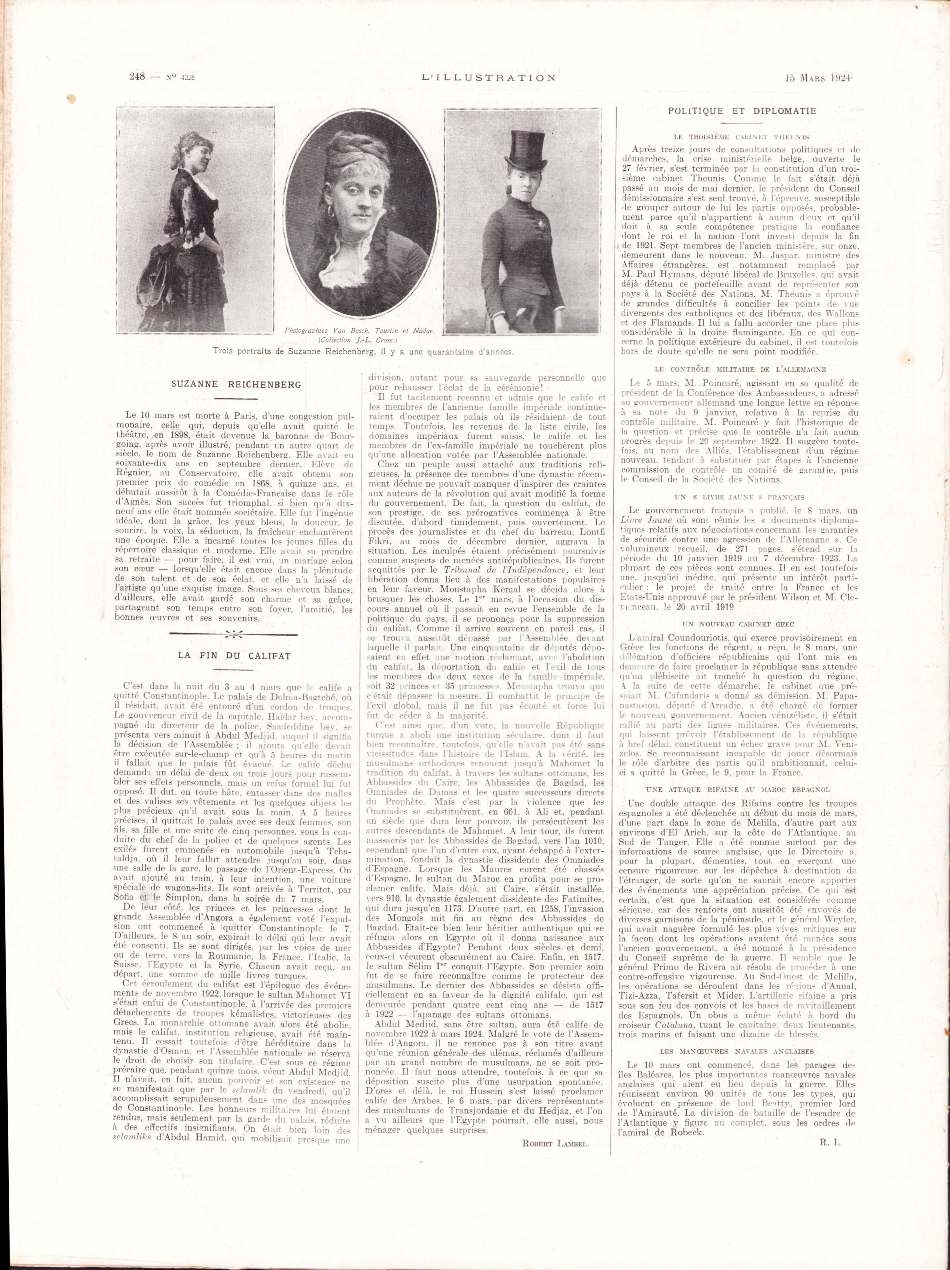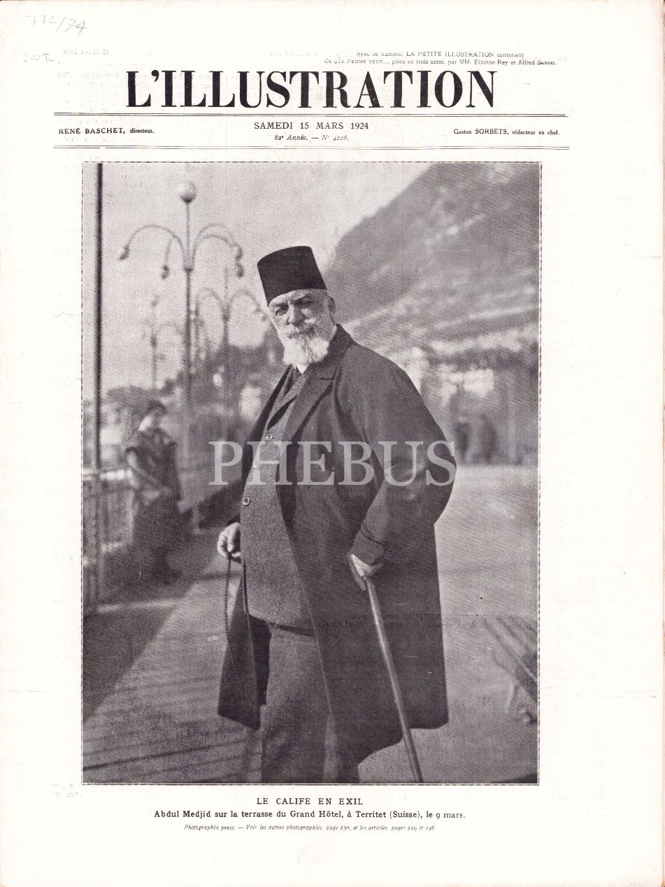 Fransızca L'illustration Dergisi 24 sayfa, - 15 Mart 1924, Kapak: Abdülmecit Grand Hotel terasında, 30x40 cm
