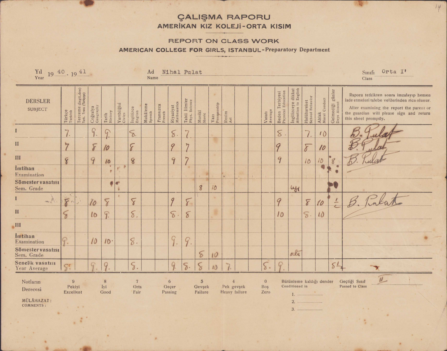 Amerikan Kız Koleji Orta Kısım Çalışma Raporu, 1940 tarihli, İngilizce-Türkçe, 31x24cm