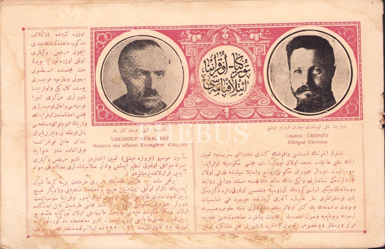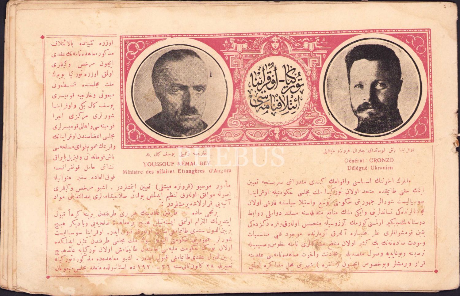 Osmanlıca Türkiye - Ukrayna İtilafnamesi, Dışişleri Bakanı Yusuf Kemal Tengirşenk, Bekir Sami Kunduh, Rauf Orbay, Ruşen Eşref Ünaydın görselli, 22 sayfa, 22x14 cm