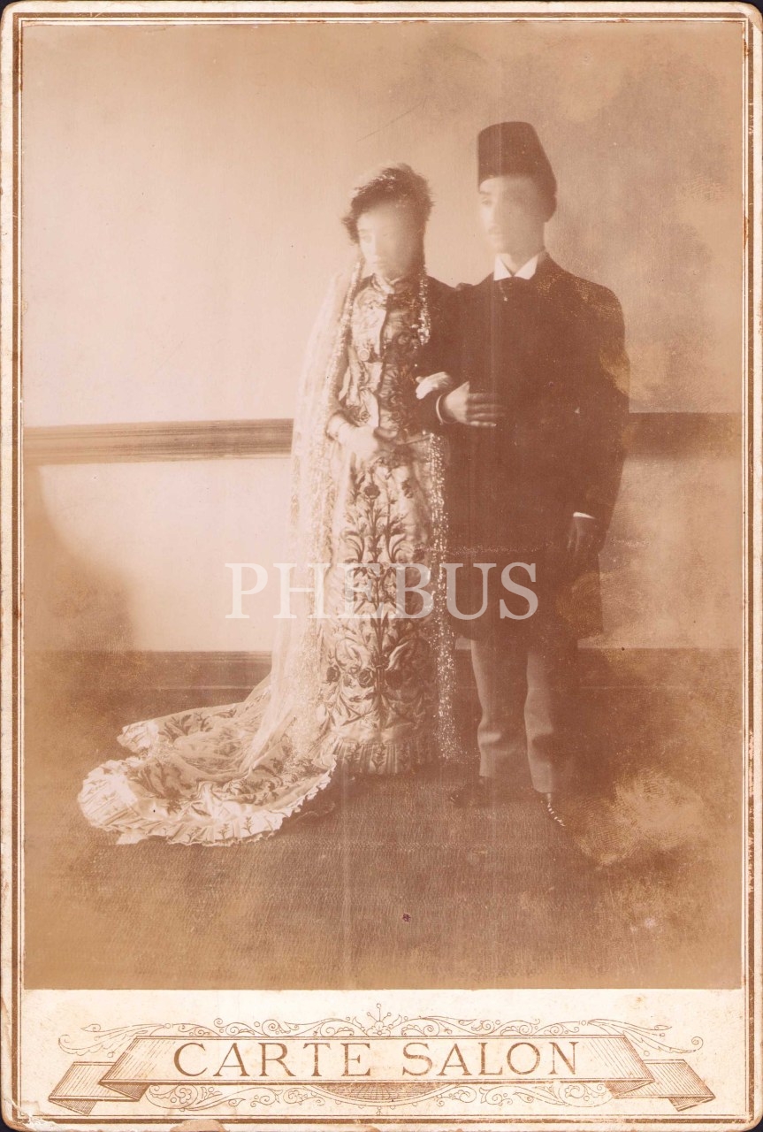 Osmanlı dönemi gelin ve damat kabin fotoğrafı, 17x25 cm