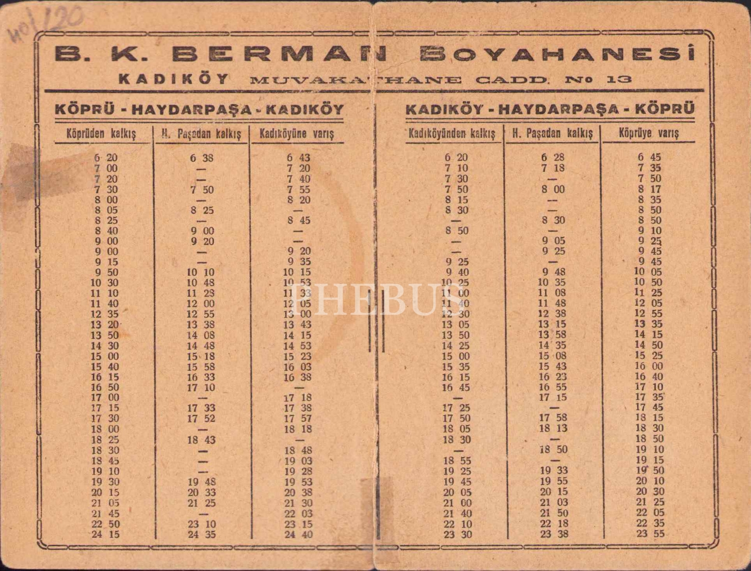 B. K. Berman Büyük Elbise Boyahanesi - Kadıköy reklamlı vapur tarifesi, 8x11 cm