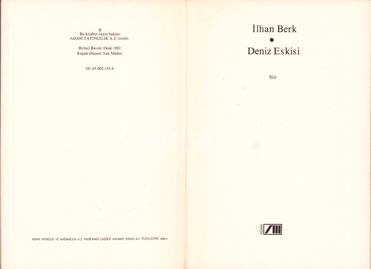 Deniz Eskisi, İlhan Berk, Adam Yayıncılık, Birinci Basım: Ocak 1982