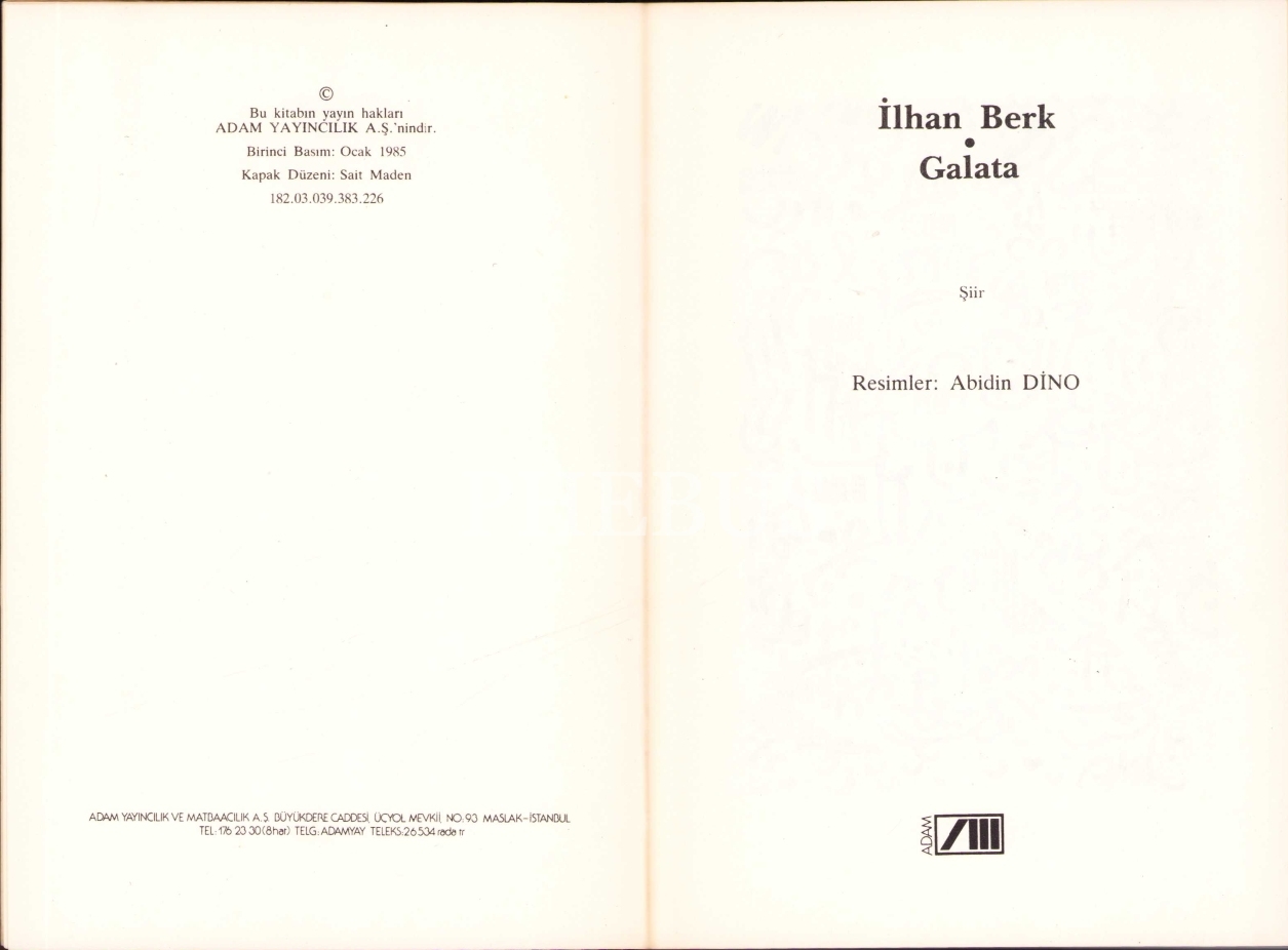 Galata, İlhan Berk, Resimler: Abidin Dino, Adam Yayıncılık - Birinci Basım: Ocak 1965