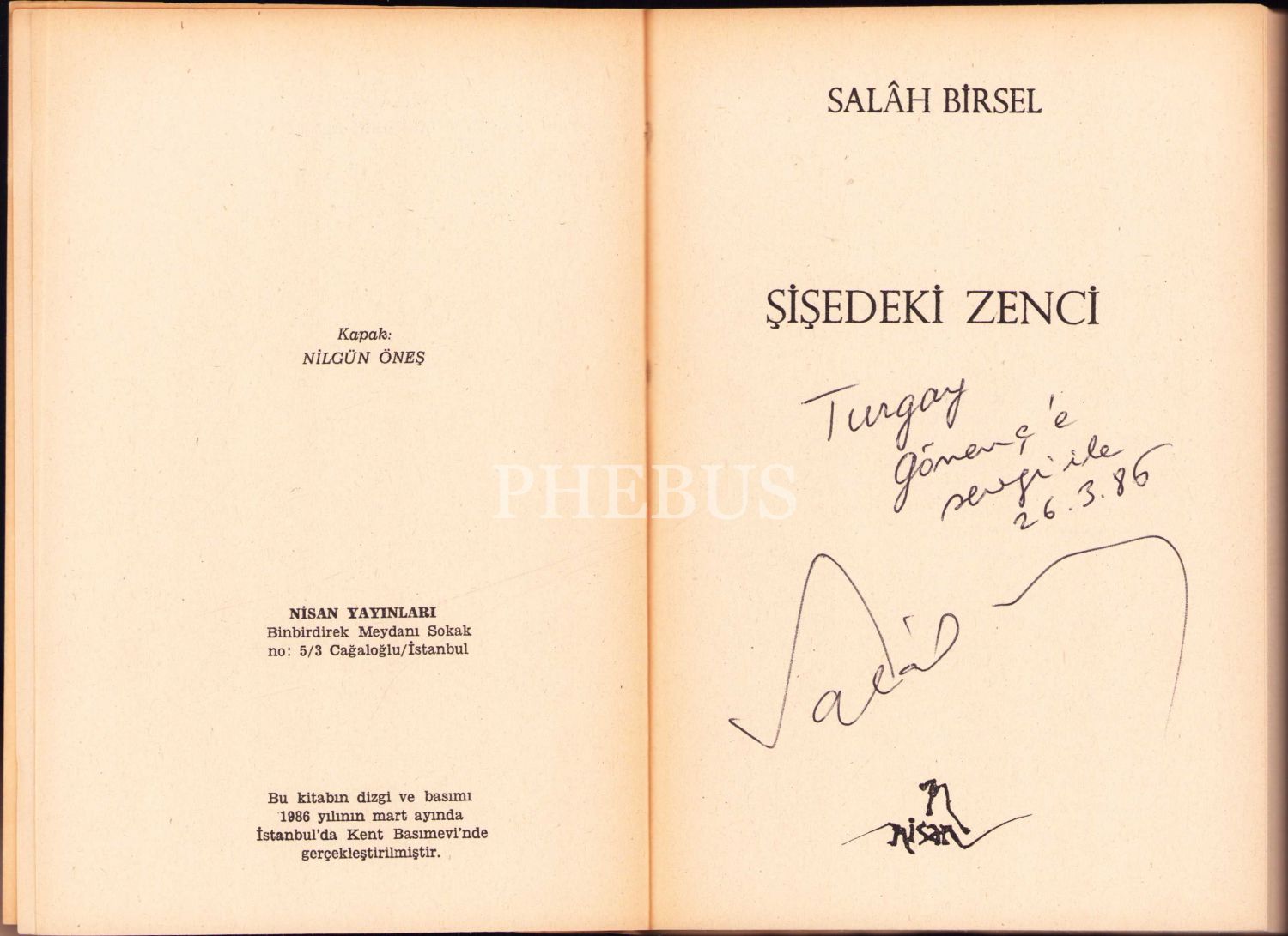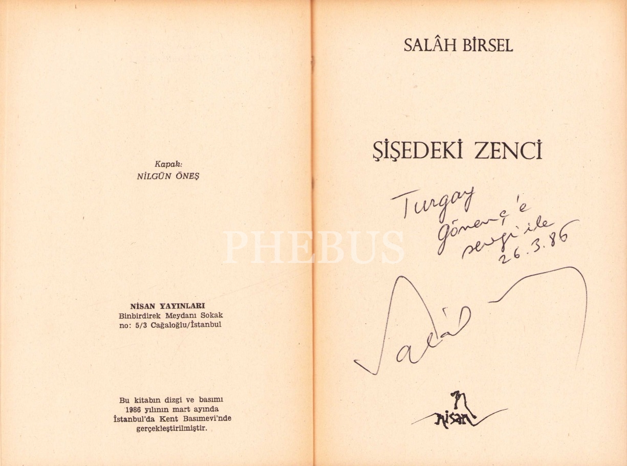 Şişedeki Zenci, Salah Birsel'den Turgay Gönenç'e ithaflı ve imzalı, Nisan Yayınları 1986