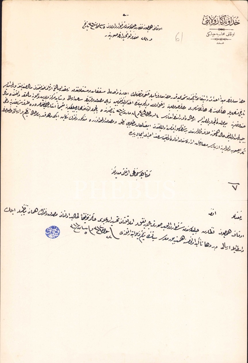 Hüdavendigar Vilayeti [Bursa] antetli, Evkaf-ı Hümayunun 10 Şubat 1310 tarihli cetvel defterinin acilen gönderilmesi hakkında, Osmanlıca 291 numaralı emir sureti, 23x33 cm