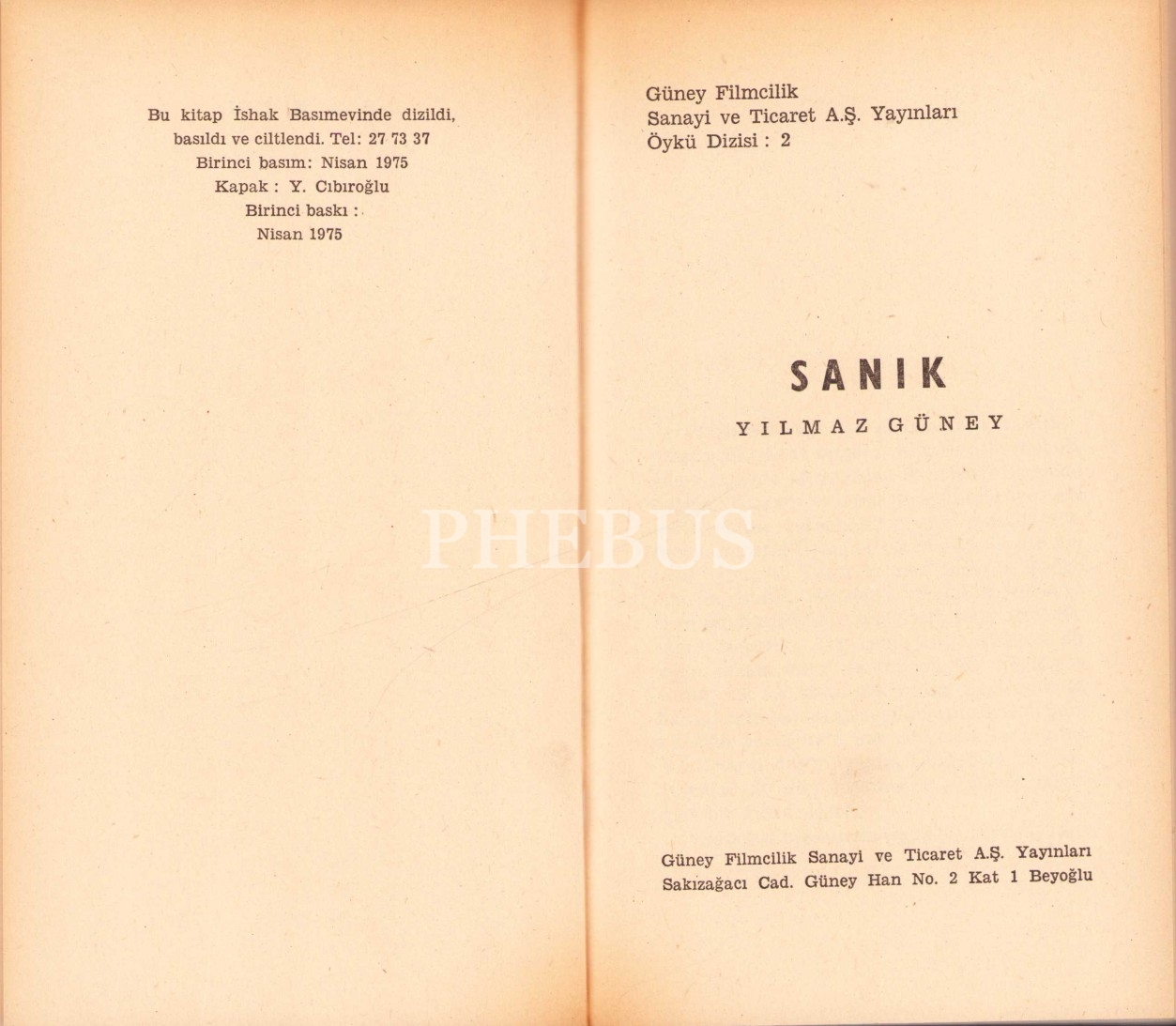 Sanık, Yılmaz Güney, Güney Filmcilik Sanayi ve Ticaret A.Ş. Yayınları, Birinci Baskı: Nisan 1975, 11x20 cm