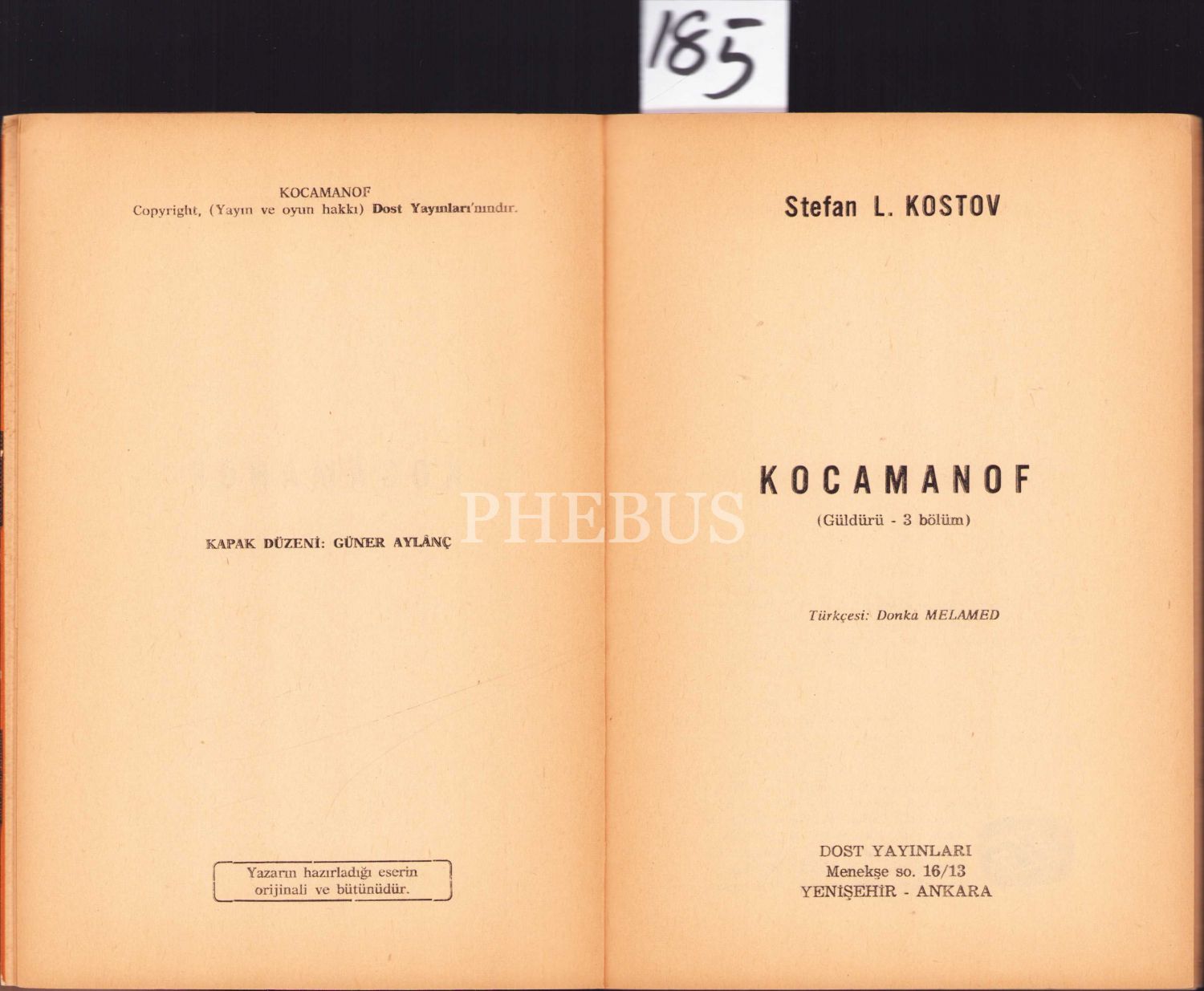 Kocamanof (Güldürü - 3 bölüm), Stefan L. Kostov, Çeviren: Donka Melamed, Dost Yayınları 1968