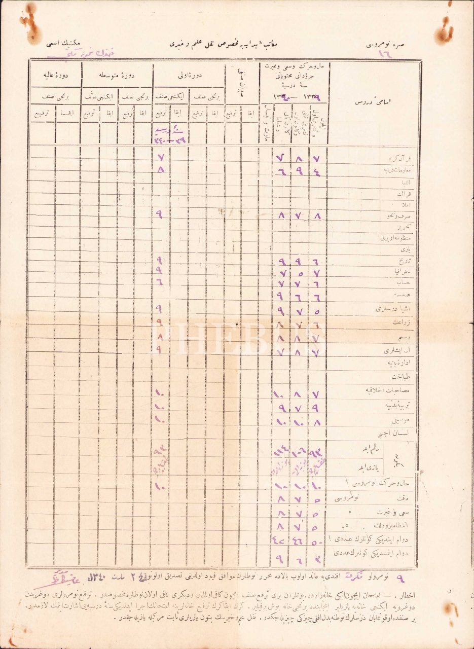 Osmanlıca Mekatib-i İbtidaiyeye mahsus nakil ilmühaberi, 25x32 cm