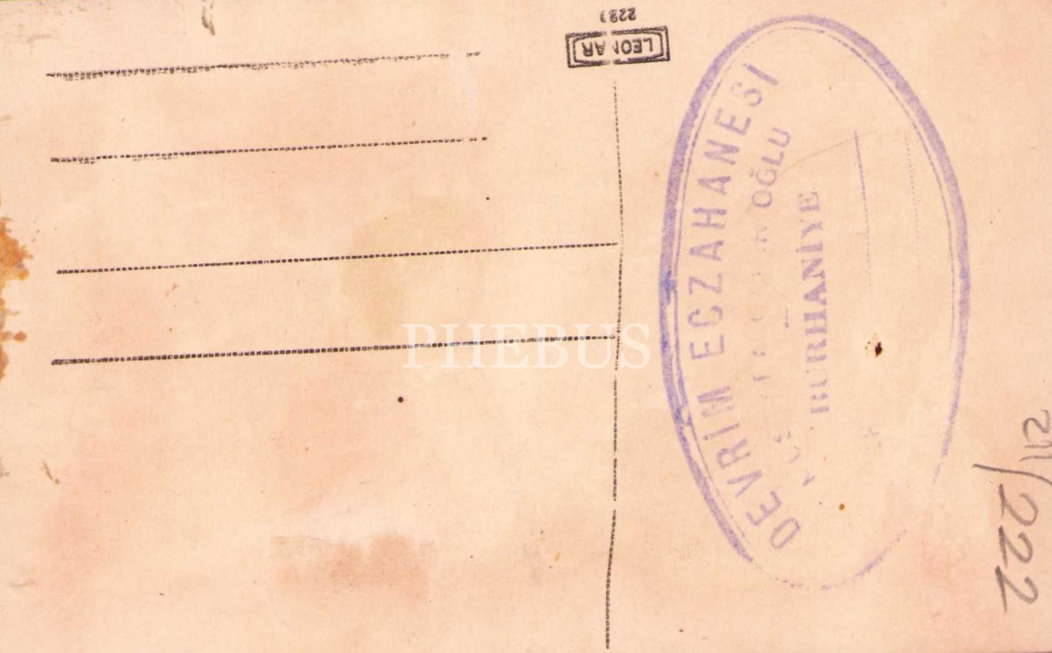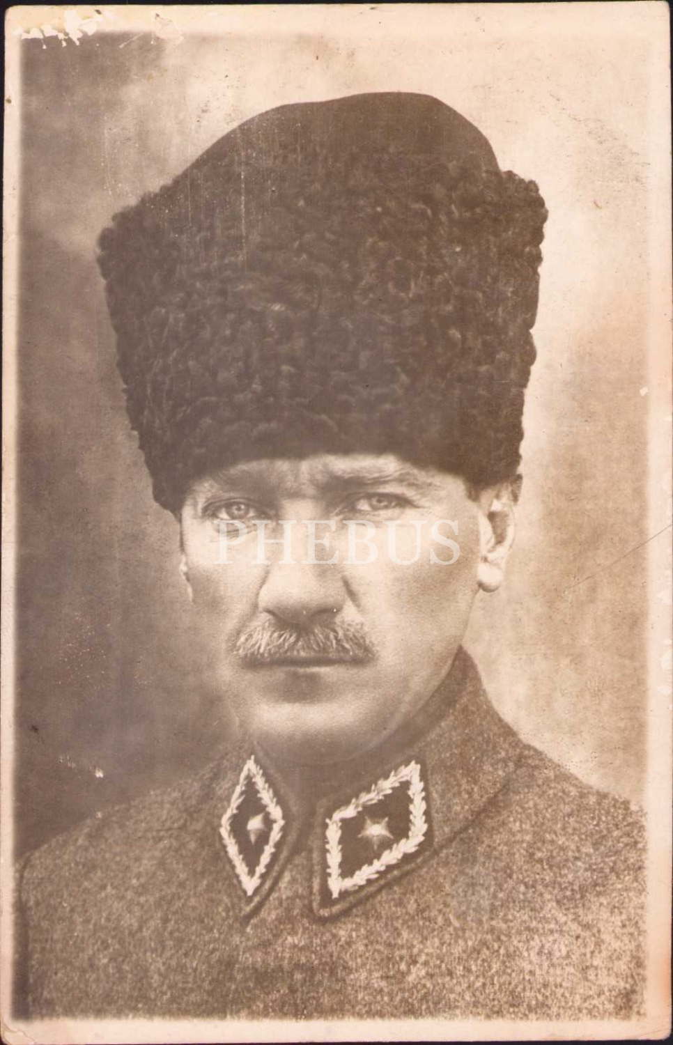 Arkası Devrim Eczahanesi - Burhaniye damgalı Mustafa Kemal Atatürk fotokartı