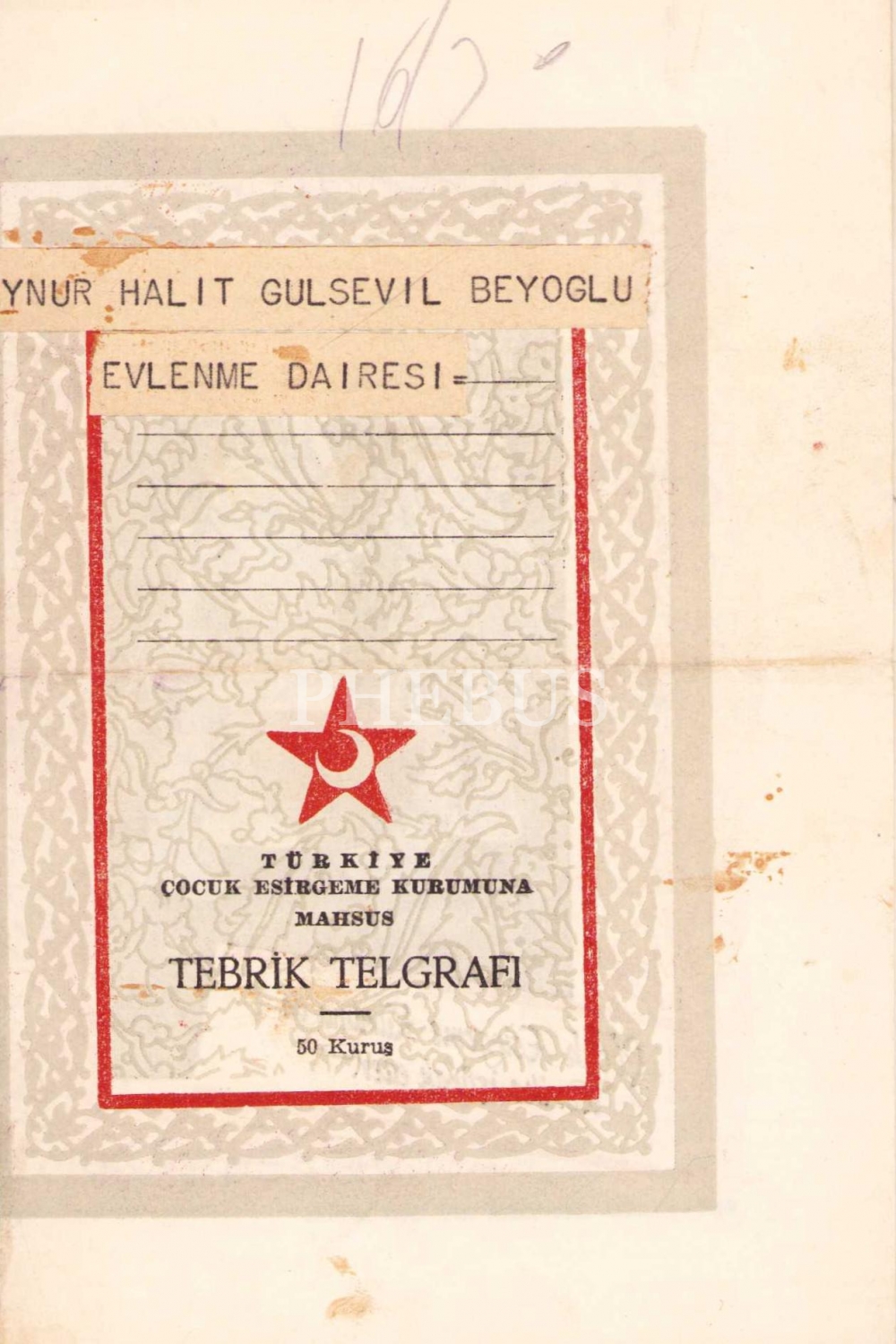 Türkiye Çocuk Esirgeme Kurumuna Mahsus Tebrik Telgrafı, 22x17 cm