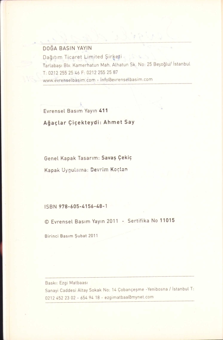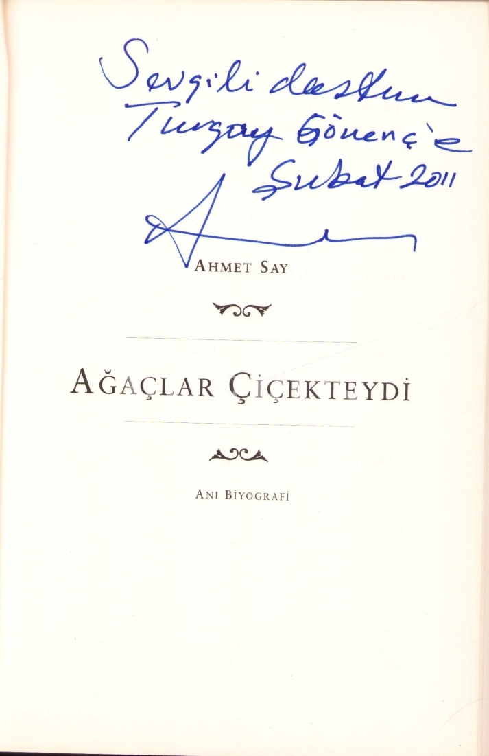 Ağaçlar Çiçekteydi, Ahmet Say'dan Turgay Gönenç'e ithaflı ve imzalı, Evrensel Basım Yayın - Birinci Basım: Şubat 2011, 388 sayfa, 13x20 cm