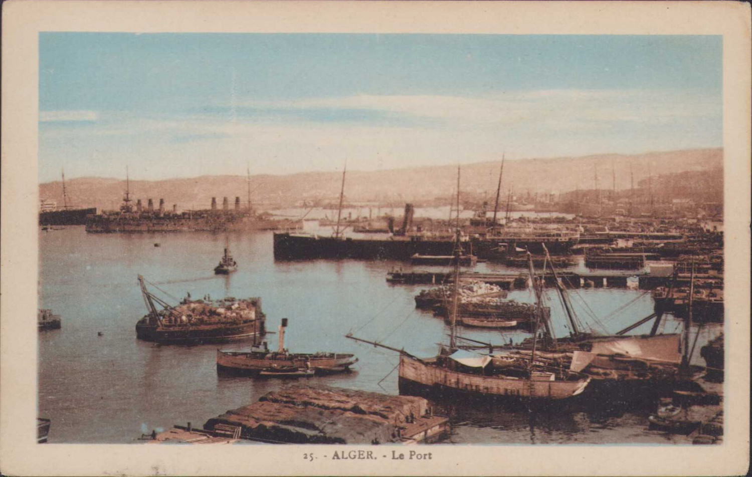 Cezayir Limanı görünüşü, Yavuz Gemisi detaylı, arkası Fransızca yazılı, Cezayir baskısı