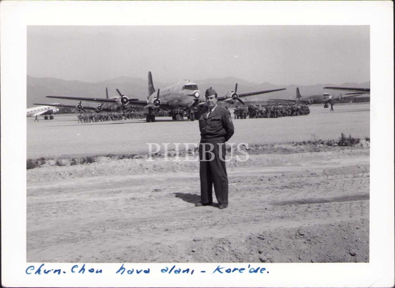 Chun Chon Havaalanı - Kore yazılı pilot asker fotoğrafı, 12x8 cm