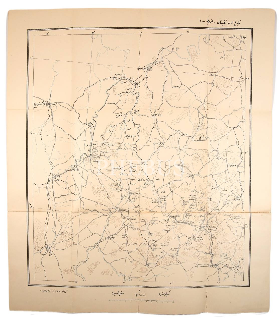Osmanlıca Tarih-i Harp Tatbikat Haritası, bir kenar yırtık, 60x50 cm