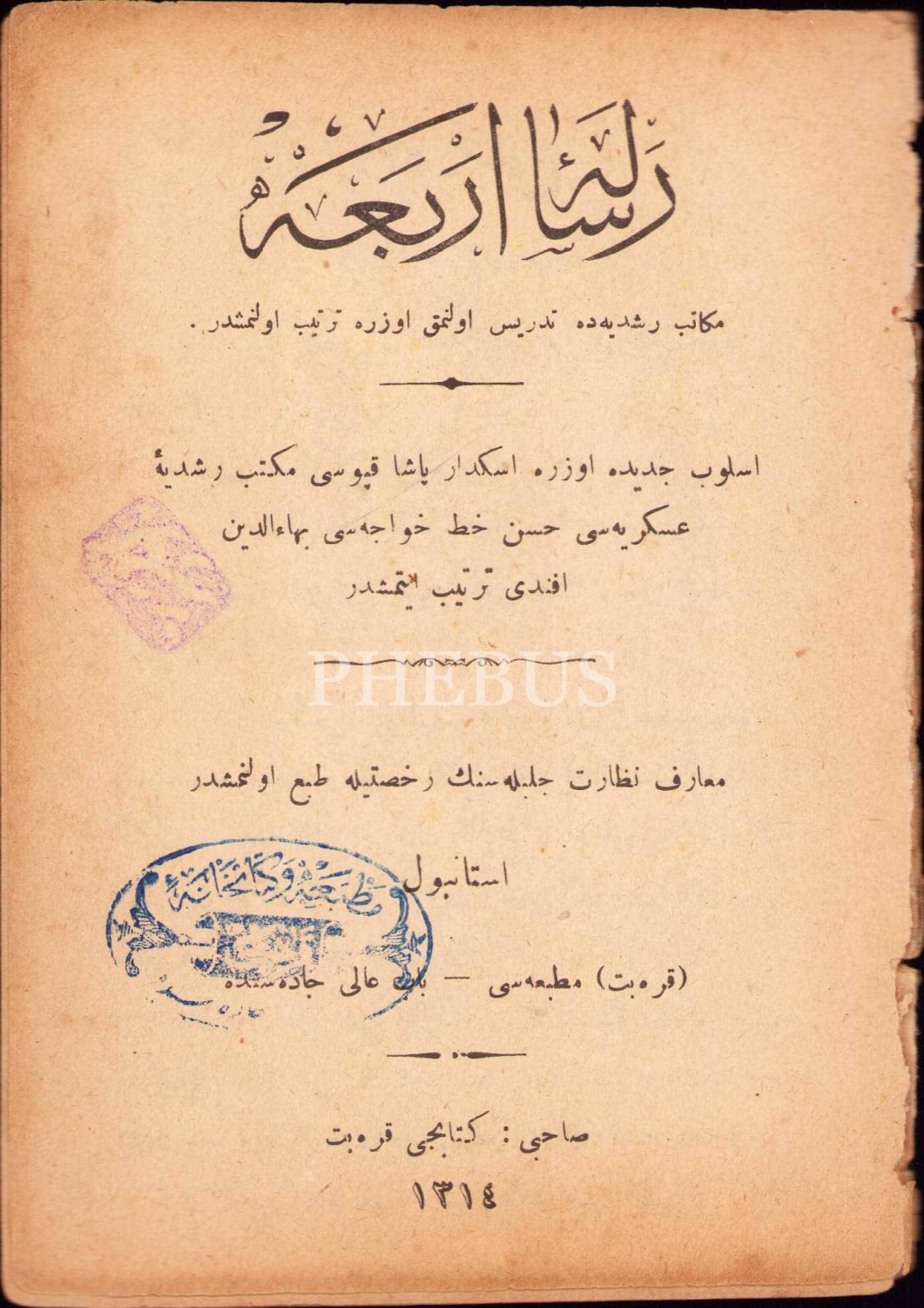 Osmanlıca Risale-i Erbai, Bahaeddin, Karabet Matbaası, İstanbul, 1314, cilt çıkması, 23 sayfa, 11x15 cm