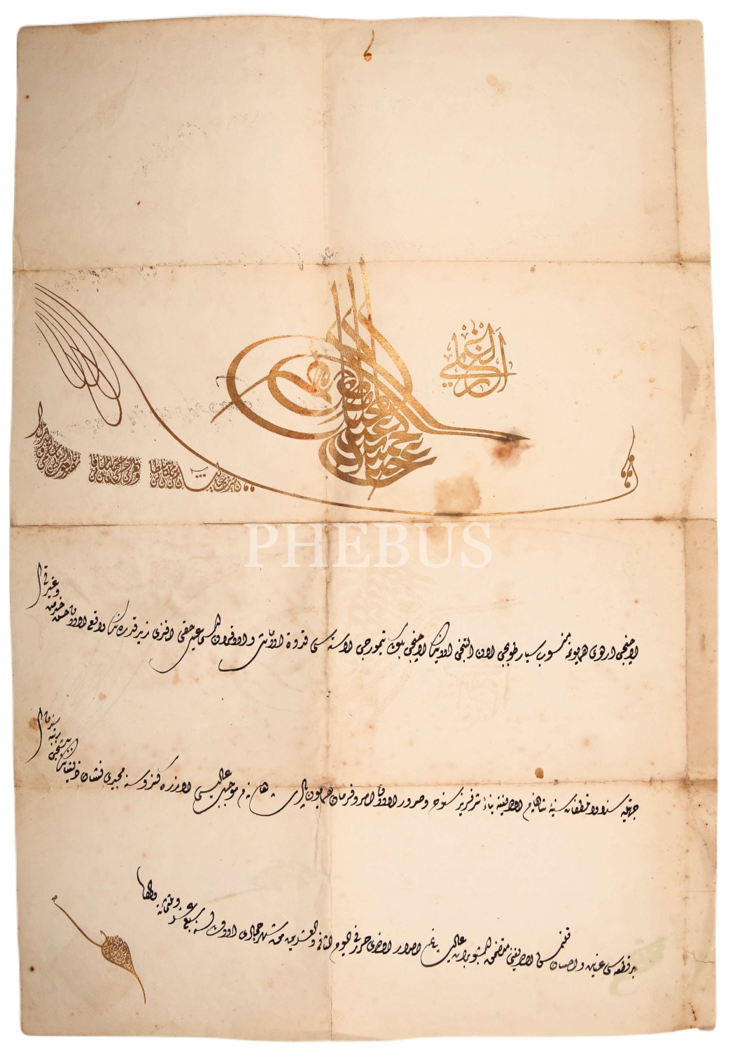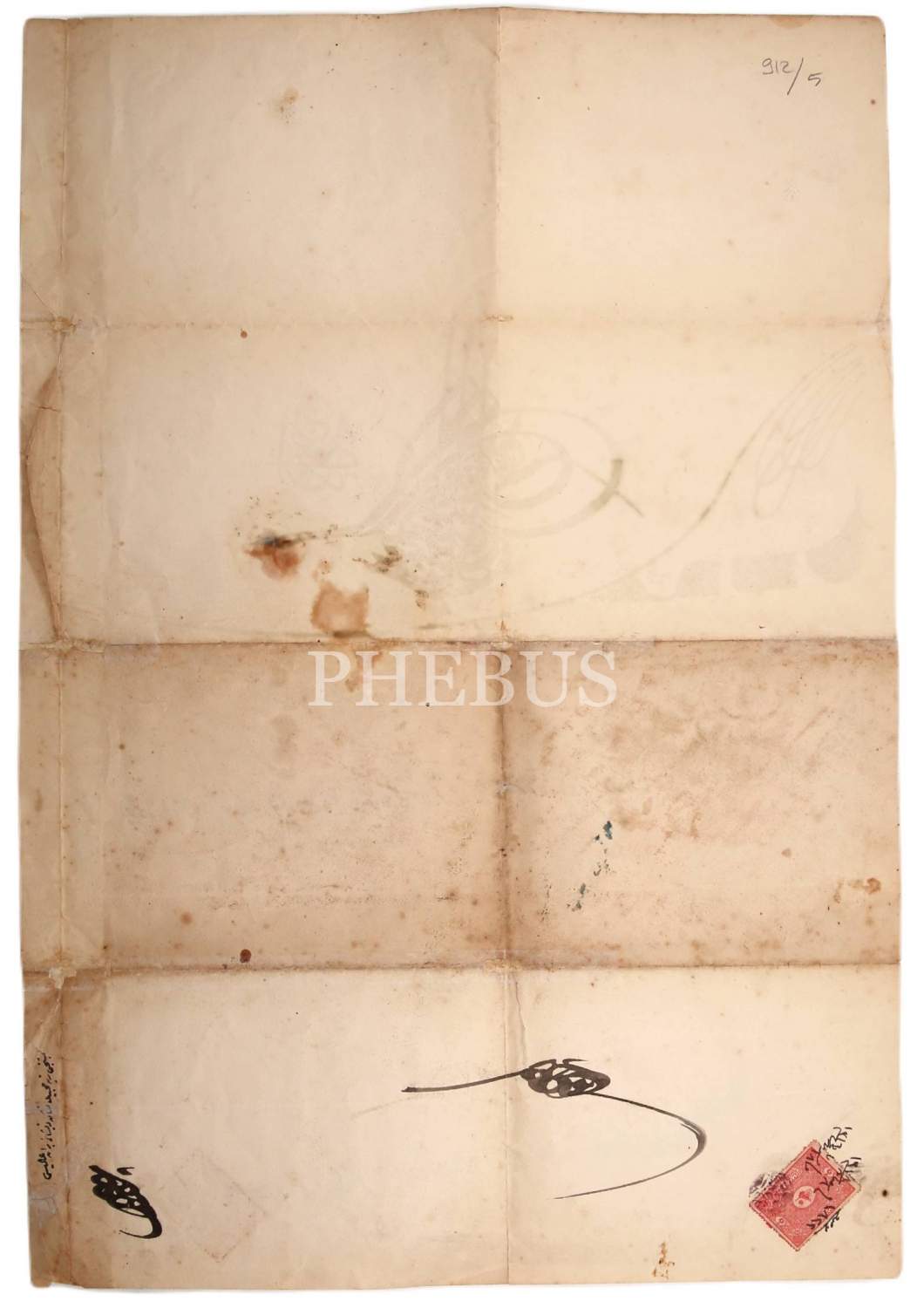 Üçüncü orduda seyyar topçu olan altıncı ordunun üçüncü bölüğünde demirci ustası olan İsmail Hakkı Efendi'ye verilen beşinci derece mecidi nişanı beratı, 53x38 cm.