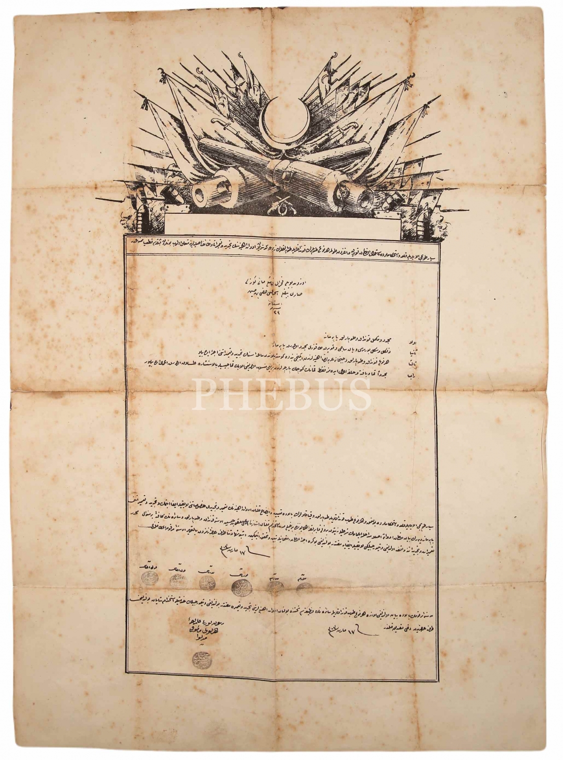 Seyyar topçu alaylarıyla kale ve istihkamlarda kullanılan topların tamir ve tecdidine Fabrika-i Hümayun'da uzun süre istihdam edilen İsmail Hakkı bin Hüseyin Usta'nın memur edildiğine dair Osmanlıca ehliyet belgesi, 17 Mart 1303, 40x54 cm
