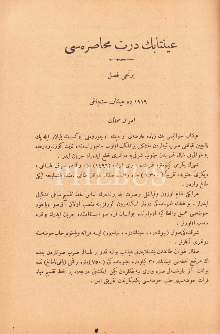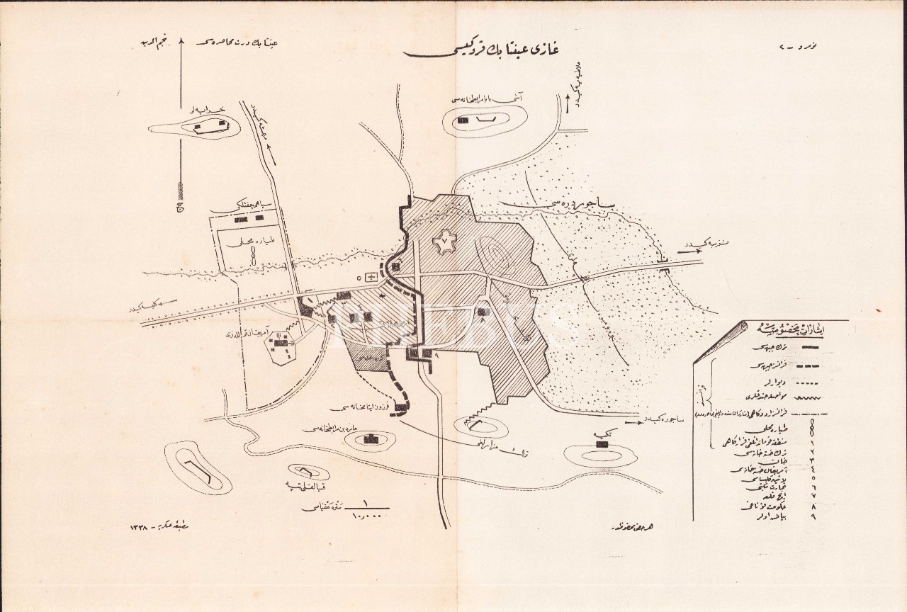 Osmanlıca Gazi Ayıntab - Ayıntab'ın Dört Muhasarası-, Gaziantep, muharriri: Fransız Erkan-ı Harbiye Kaimmakamı Abadi, mütercimi: Erkan-ı Harbiye Yüzbaşısı Necmeddin, metin dışında iki adet kroki bulunmaktadır, Dersaadet - Matbaa-i Askeriye, 1339, 16x23 cm