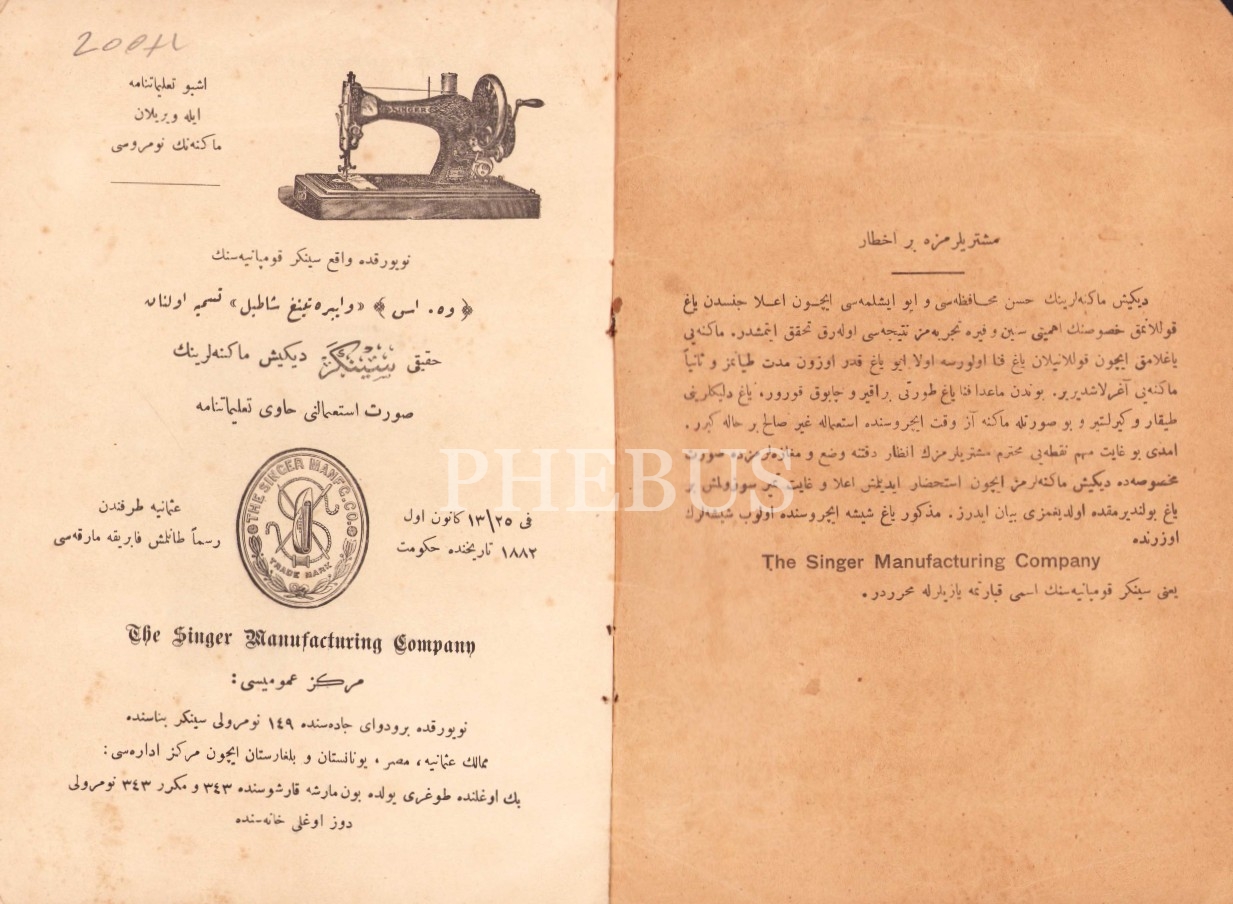 Singer marka dikiş makinesine ait Osmanlıca bir kullanım kılavuzu, 24 syf., 15x22 cm