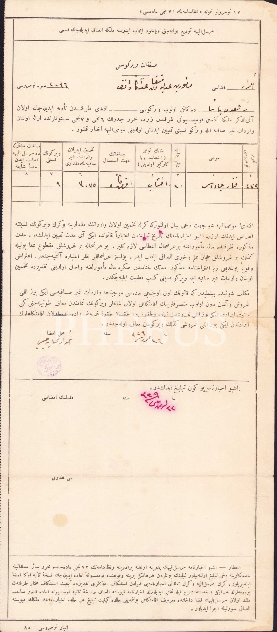 Osmanlıca Musakkafat [Vakfa Gelir Sağlayan Ev ve Dükkan] Vergisi İhbarnamesi, 1329, 17x40 cm