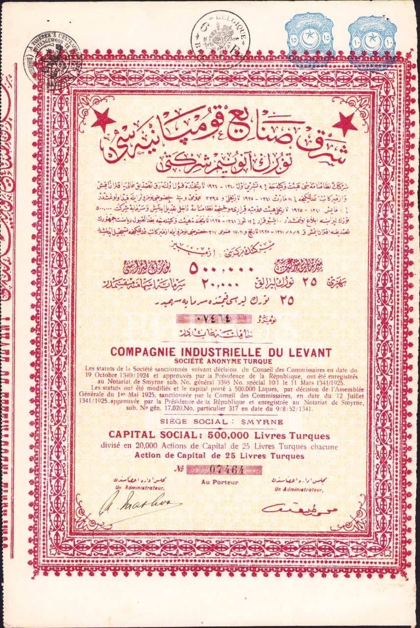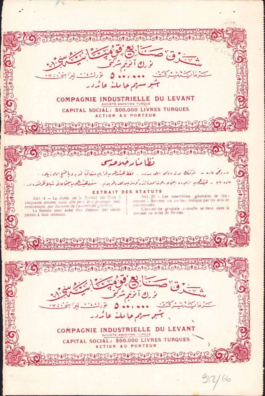 Osmanlıca - Fransızca Şark Sanayi Kumpanyası Türk Anonim Şirketi hisse senedi, 19x29 cm