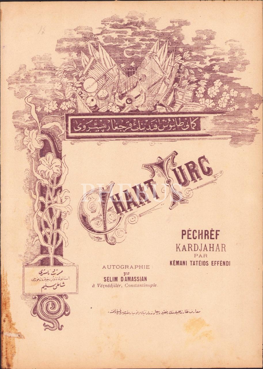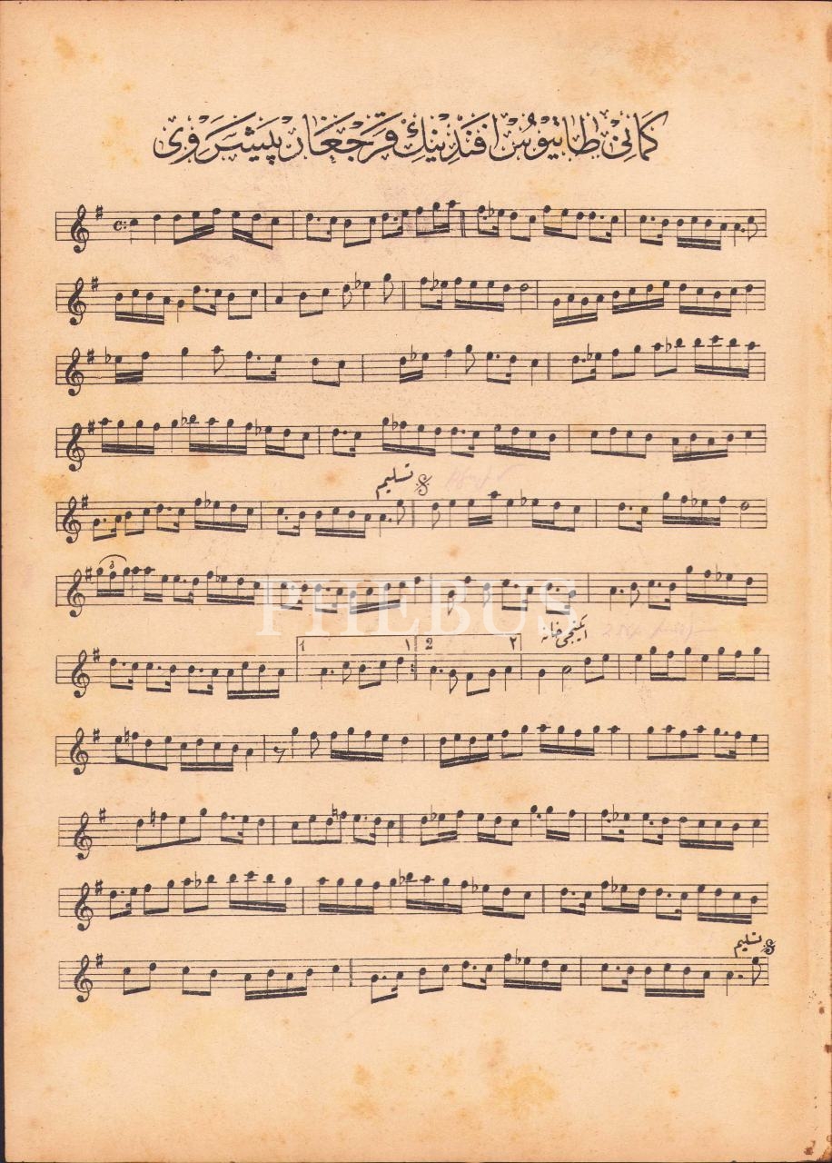Constantinople baskı, Kemani Tatyos Efendi'nin Karcığar Peşrevi, editör Şamlı İskender, 3 sayfa, 23x33 cm