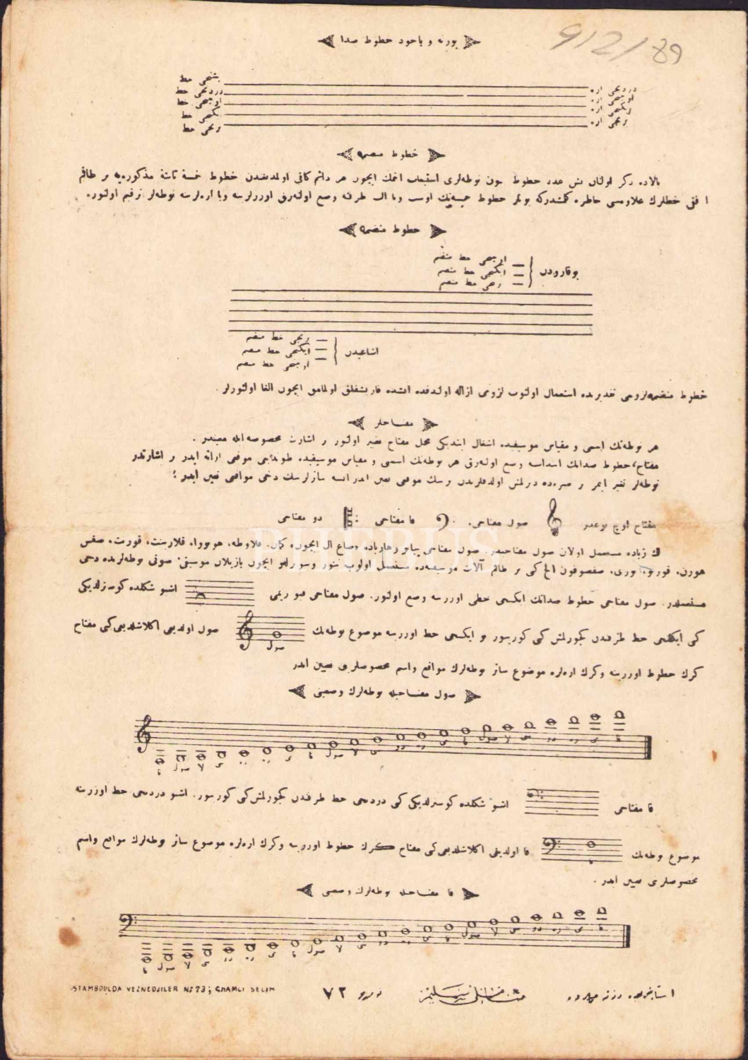 Osmanlıca Risale-i Musikiyye Yahud Müntehab Nota Parçaları, editör Şamlı İskender, 4 sayfa, 13x19 cm