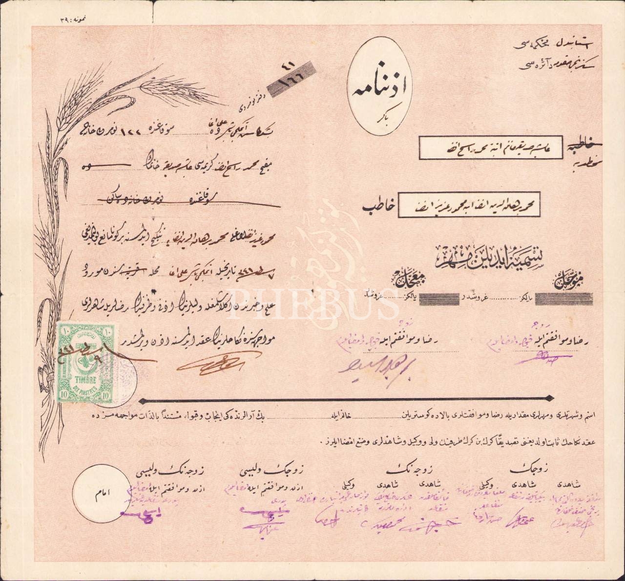 Osmanlıca evlilik izinnamesi, Beşiktaş, 1341 tarihli, 28x26 cm