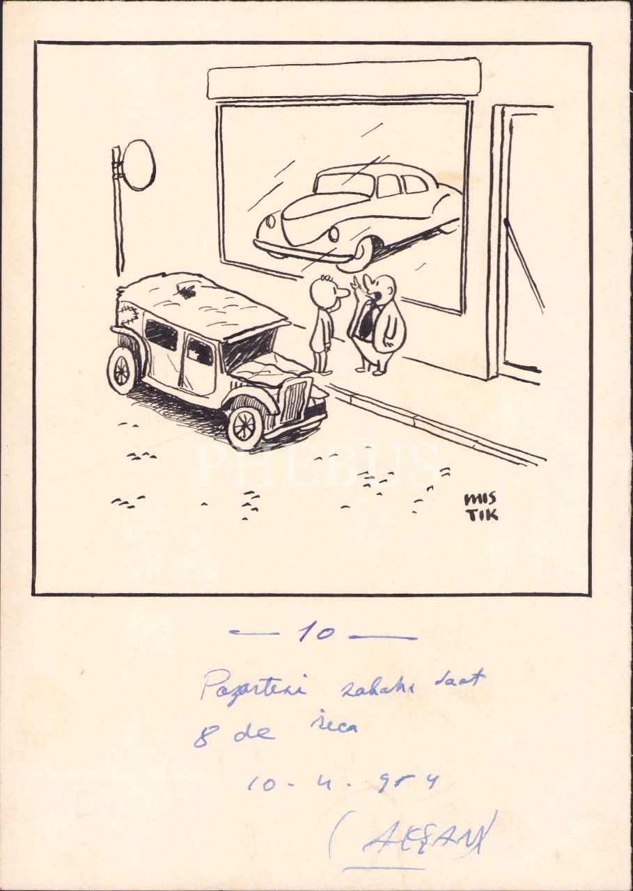 Mıstık ıslak imzalı orijinal çizim, 14x20 cm