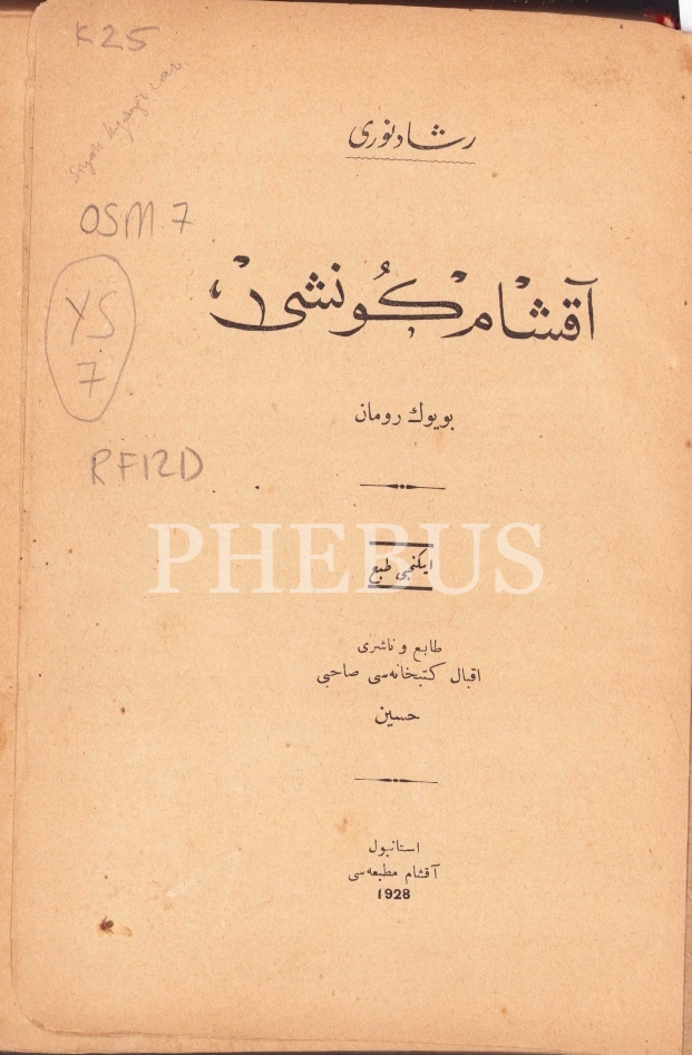 Osmanlıca Akşam Güneşi - Büyük Roman, Reşad Nuri, İkinci baskı, Mahmud Bey Matbaası, İstanbul 1928, 412 sayfa, 14x21 cm