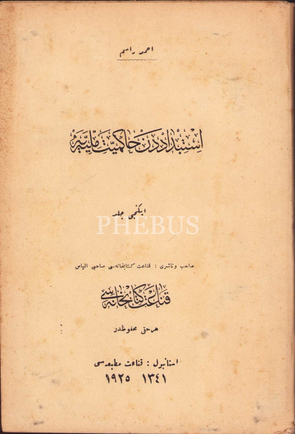 Osmanlıca İstibdaddan Hakimiyyet-i Milliyyeye [2. cild], Ahmed Rasim, Kanaat Matbaası, İstanbul 1925, 168 syf, 13x19 cm