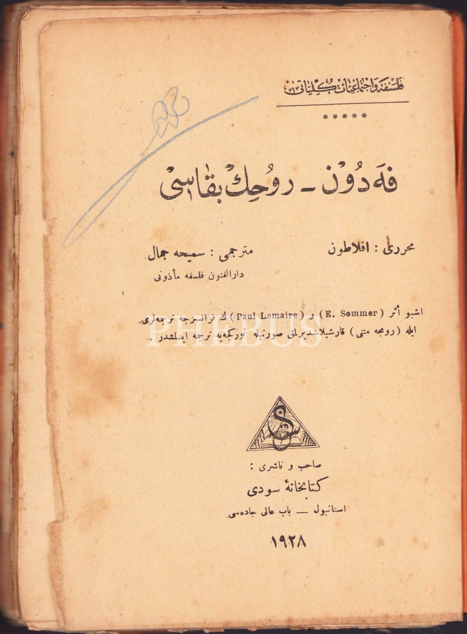 Semiha Cemal'in Tercümesiyle Osmanlıca Fedon Ruhun Bekası, Eflatun [Platon], Sudi Kitabhanesi, İstanbul 1928, 143 syf., 14x20 cm
