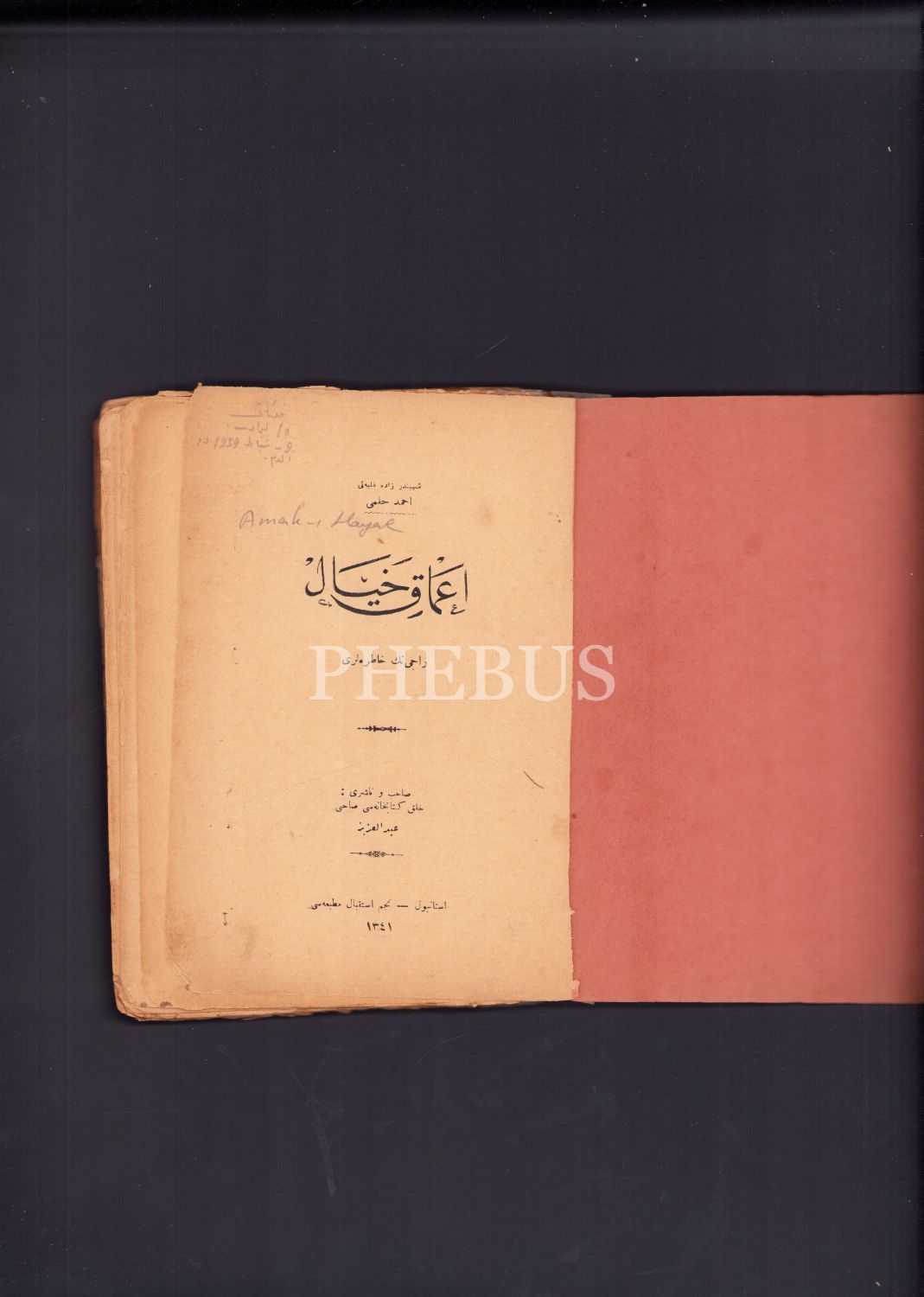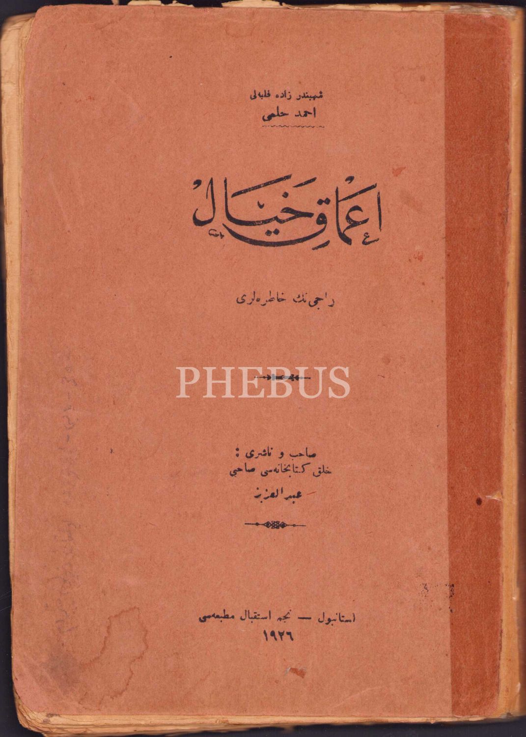 Osmanlıca İlk Fantastik Eserlerden: Amak-ı Hayal [Hayalin Derinlikleri], Raci'nin Hatıraları, Şehbenderzade Filibeli Ahmed Hilmi, Necm-i İstikbal Matbaası, İstanbul, 1926, 176 sayfa, 14x20 cm