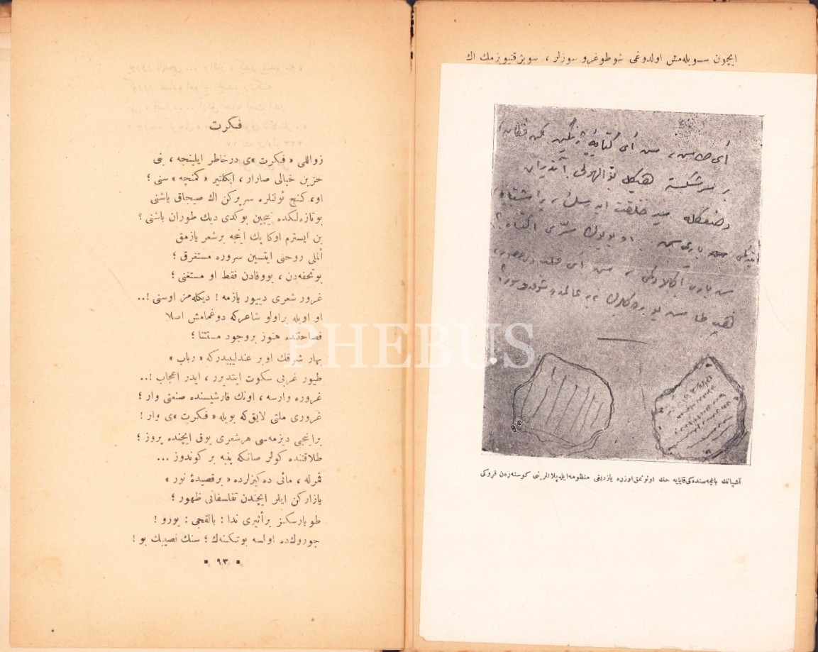 Osmanlıca Düşünce Fikret'in Gayri Matbu Eş'ârından -Nüsha-i Mahsusa-, Tevfik Fikret, 224 syf., 14x23 cm