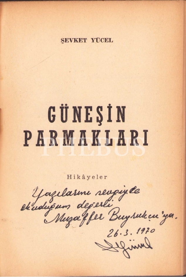 "Yazılarını sevgiyle okuduğum değerli Muzaffer Buyrukçu'ya 26.3.1970 -İmza-"