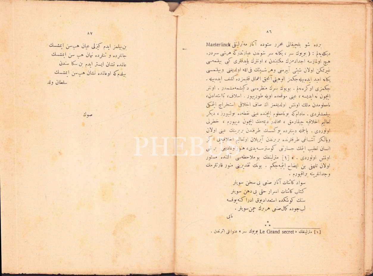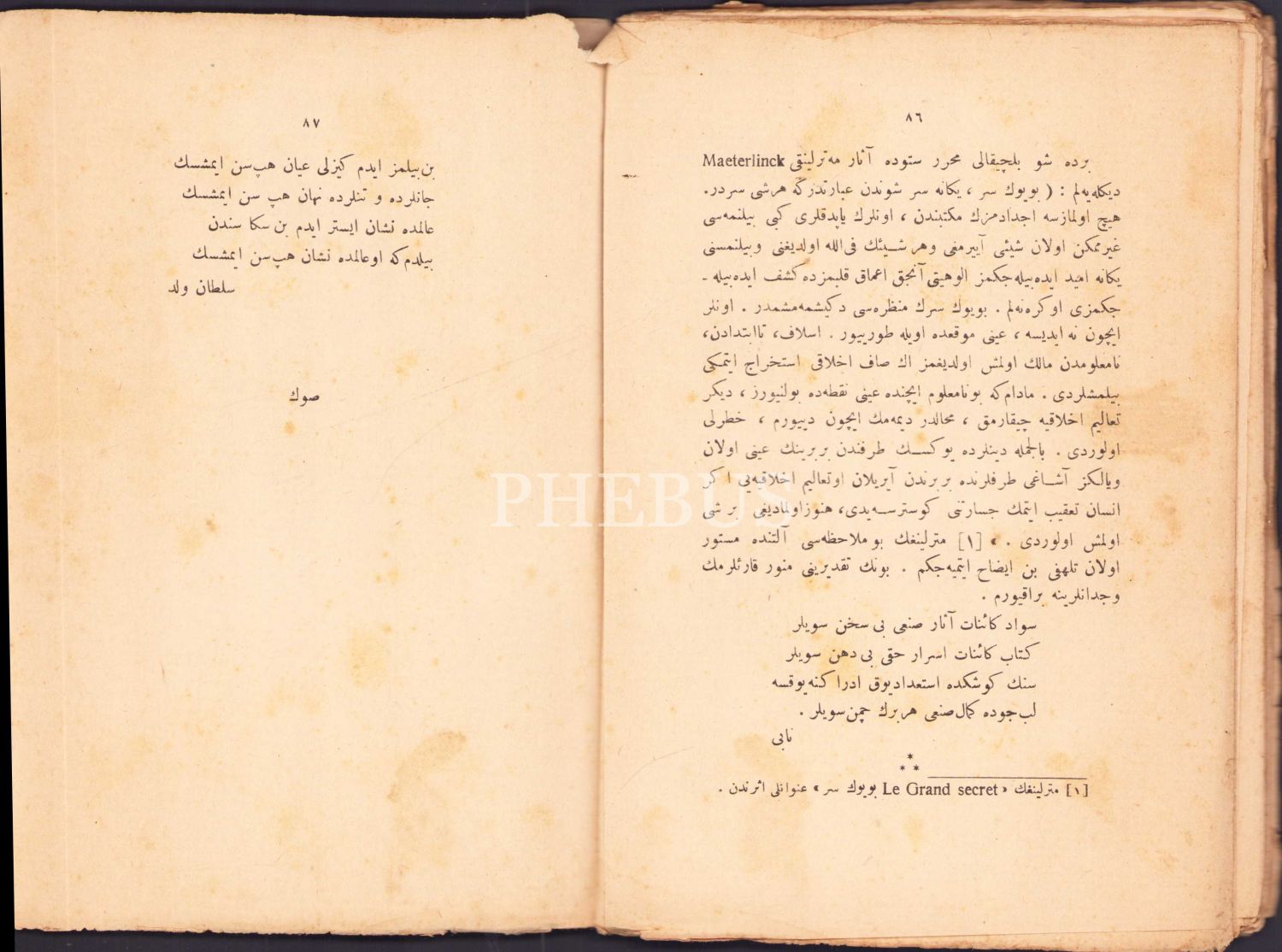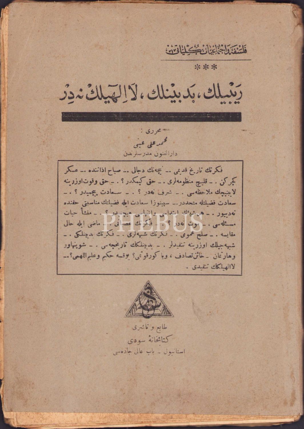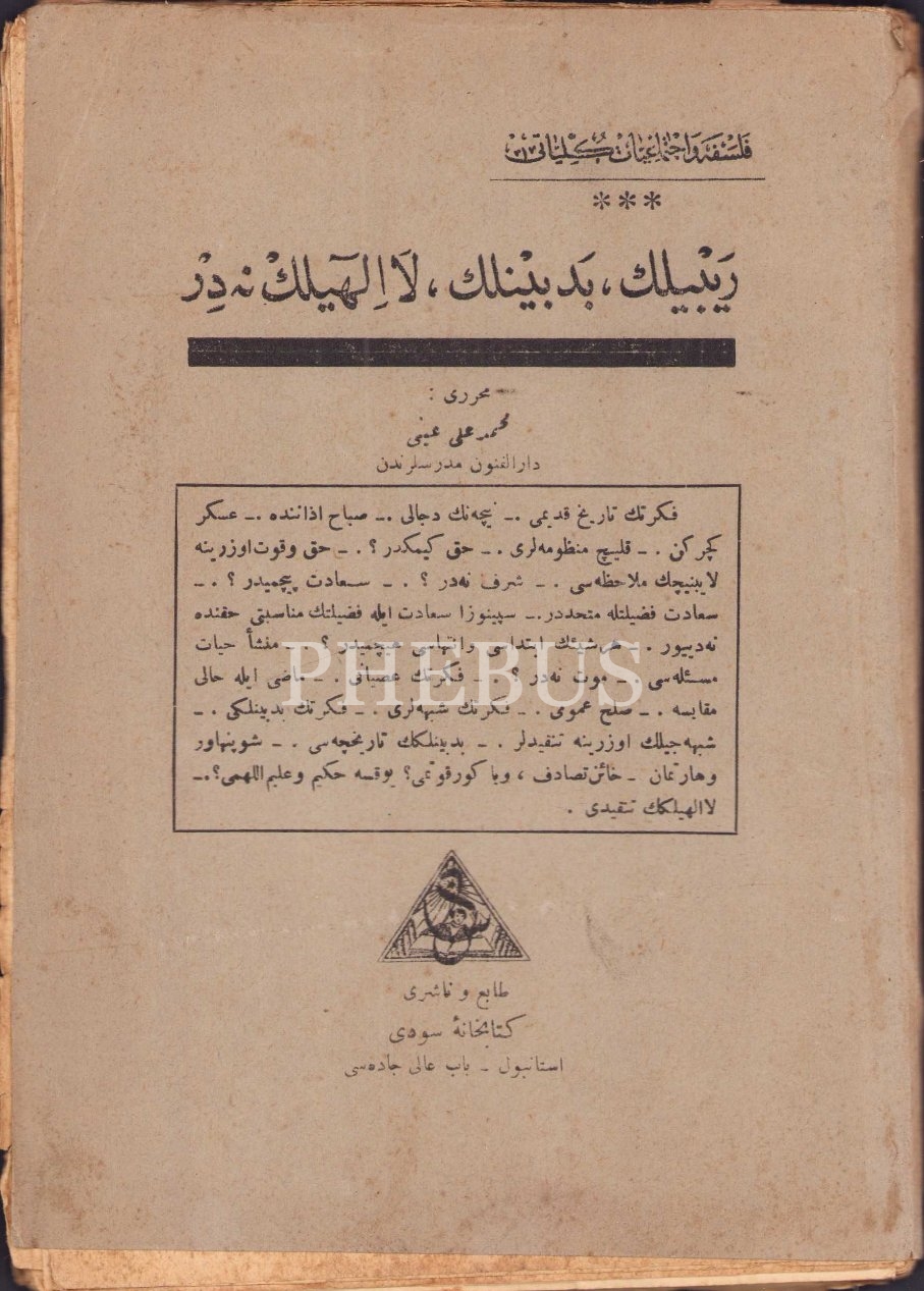 Osmanlıca Reybilik, Bedbinlik, Lailahilik Nedir [Birinci baskı], Mehmed Ali Ayni, Tevfik Fikret'in Tarih-i Kadim'ine Bir Cevab alt başlığıyla, Sudi Kitabhanesi, İstanbul 1927, 87 syf., 14x20 cm