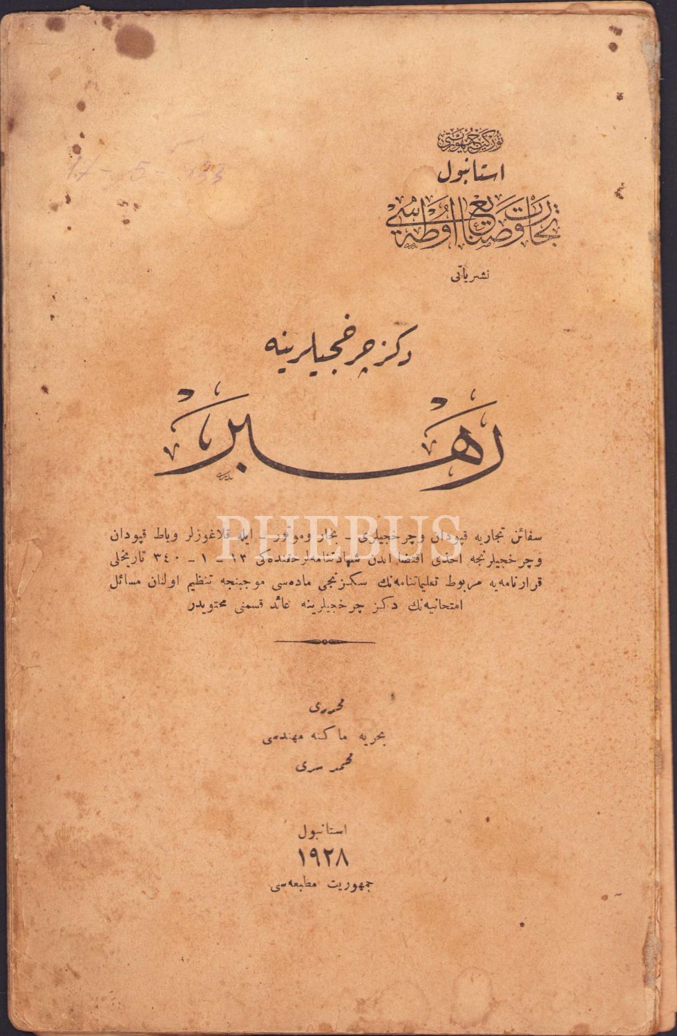 Osmanlıca Deniz Çarhcılarına Rehber, Mehmed Sırrı, Cumhuriyet Matbaası, İstanbul 1928, 422 syf., 15x23 cm