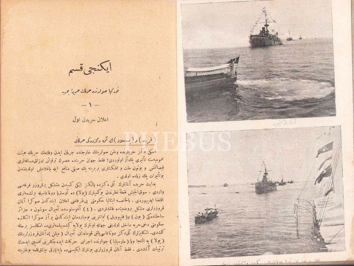 Osmanlıca iki kitap bir arada: Birinci kitabın künyesi mevcut değil, Türkiye sularında harp hareketlerine dair, 243 syf.; Cihan Harbinde Deniz Muharebeleri ve Skagerrak, Yüzbaşı Fevzi, Ahmed Kamil Matbaası, 1928, 114 syf., 16x22 cm