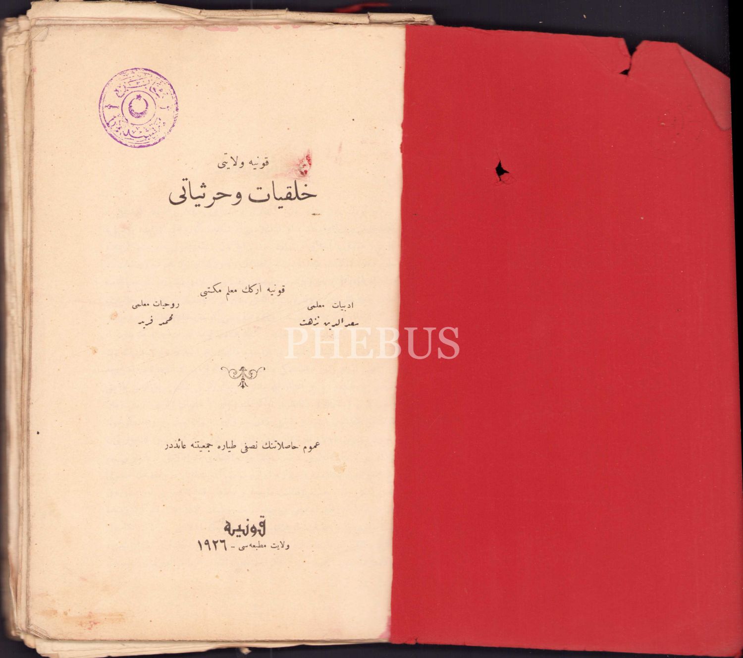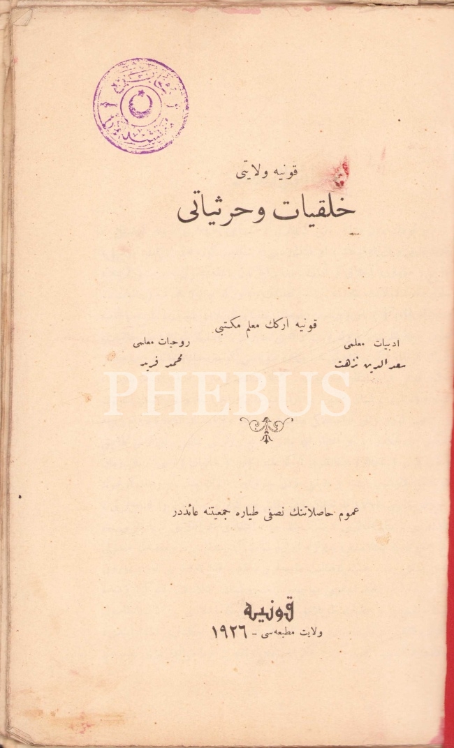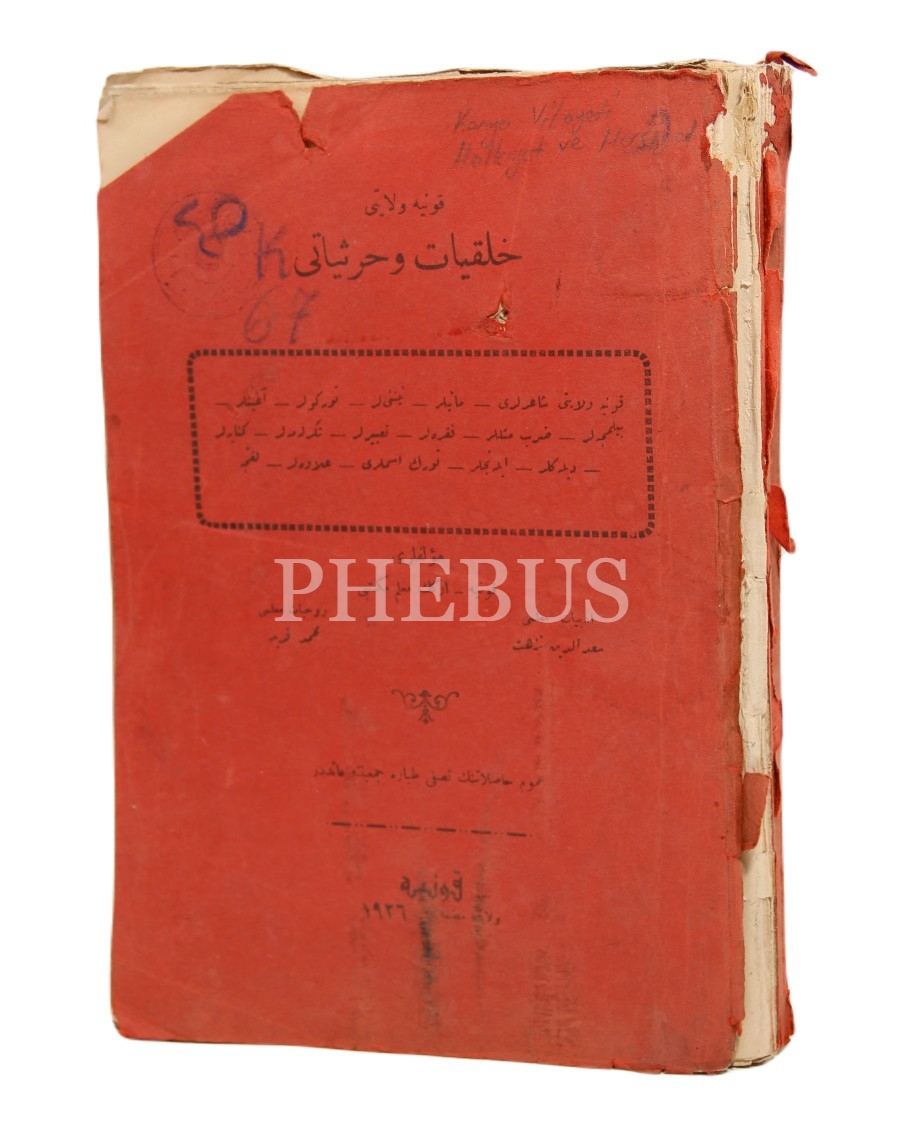 Osmanlıca Konya Vilayeti Halkiyat ve Harsiyatı, Sadeddin Nüzhet-Mehmed Ferid, Konya Vilayet Matbaası, 1926, 347 syf., 16x24 cm