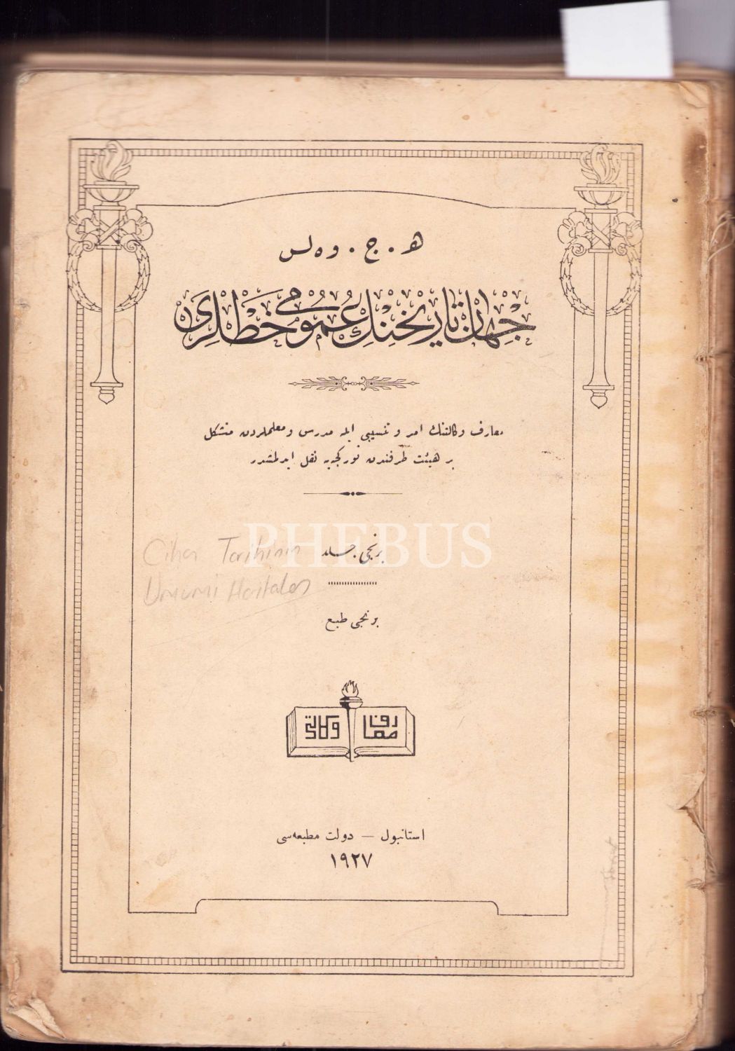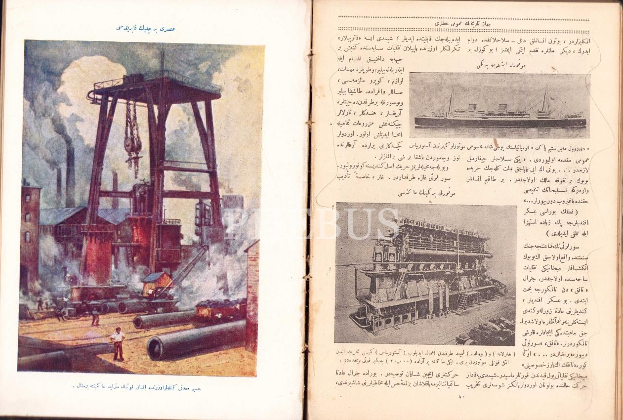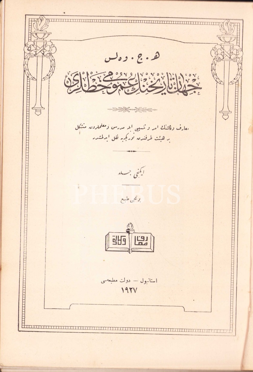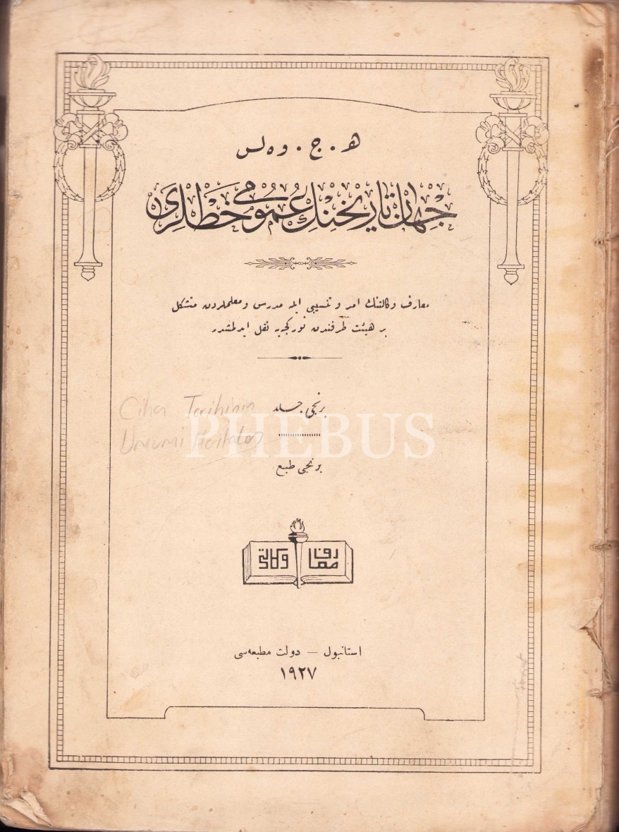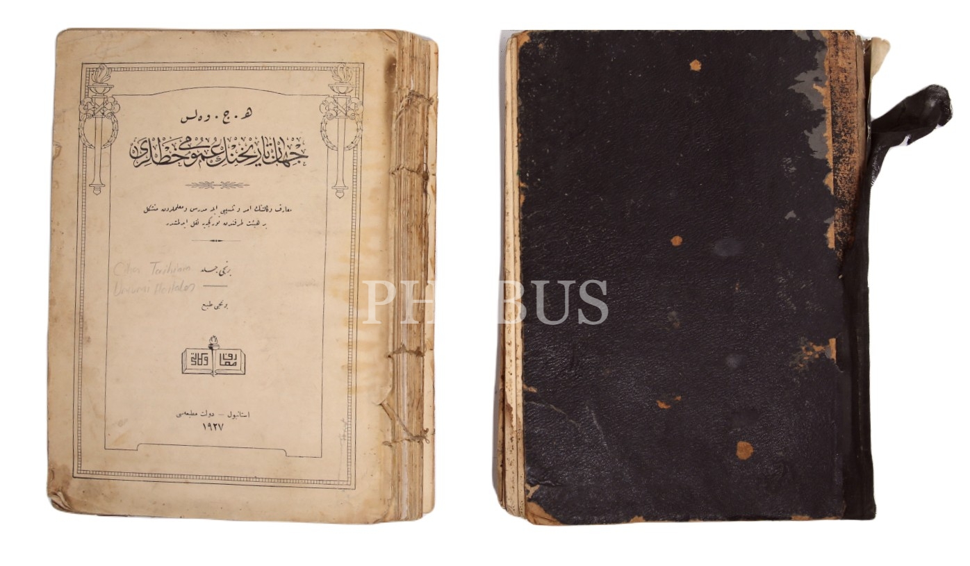 Osmanlıca Cihan Tarihinin Umumi Hatları [İki kitap beş cilt bir arada, birinci baskı], H. G. Wells, Devlet Matbaası, İstanbul 1927-28, 1054 syf., 19x26 cm