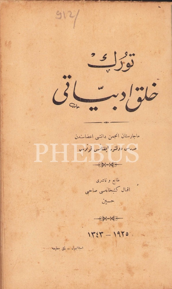 Osmanlıca Türk Halk Edebiyatı, Ignacz Kunos, Yeni Matbaa, İstanbul 1925, 206 syf., 14x22 cm