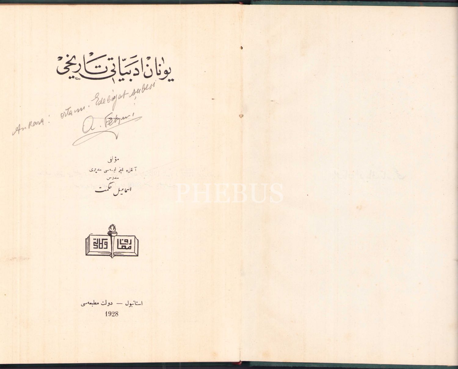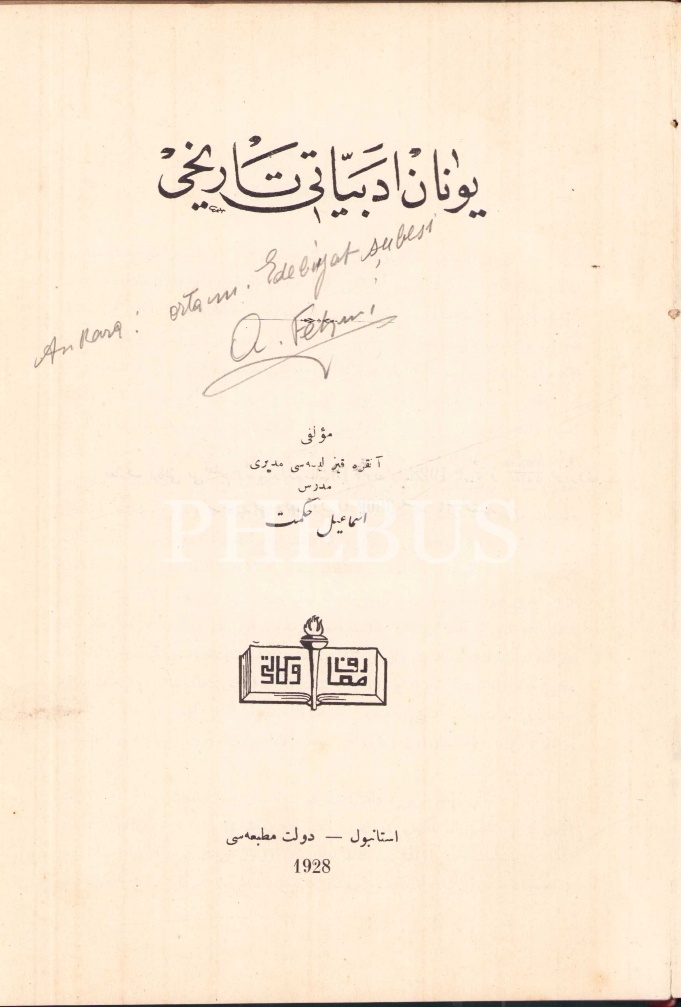 Osmanlıca Yunan Edebiyatı Tarihi, İsmail Hikmet, Devlet Matbaası, İstanbul 1928, 178 syf., 16x24 cm