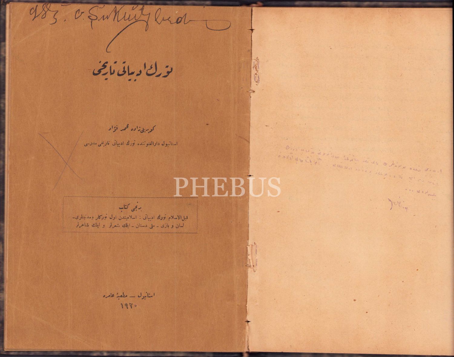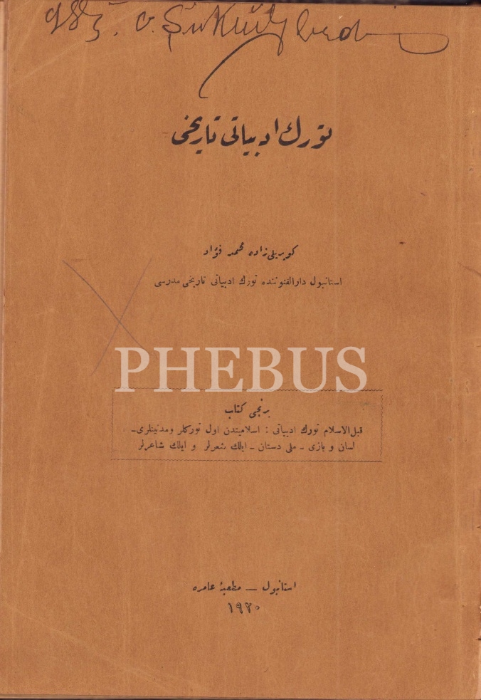 Osmanlıca Türk Edebiyatı Tarihi, Köprülüzade Mehmed Fuad, Matbaa-i Amire, İstanbul 1920, 215 syf., 16x23 cm