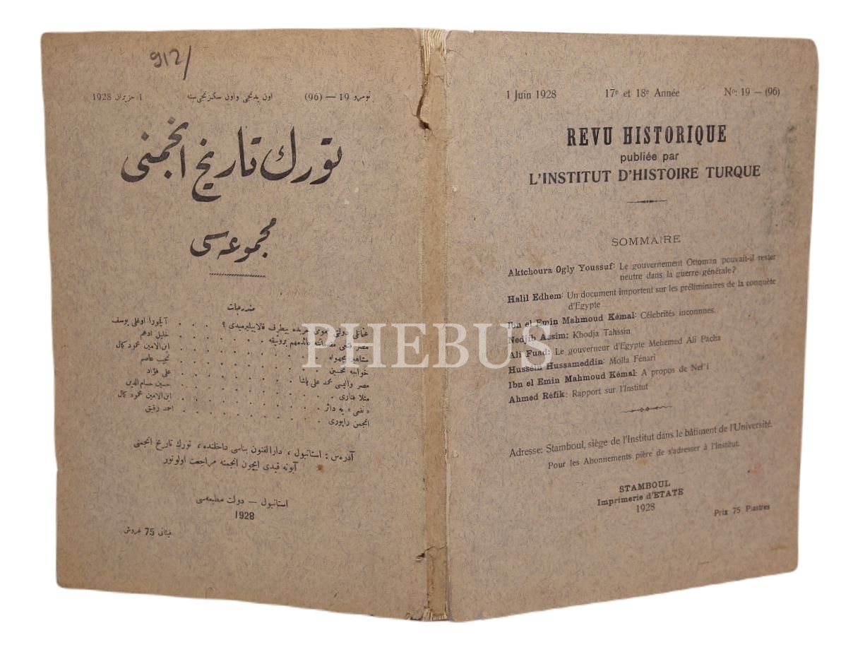 Osmanlıca Türk Tarih Encümeni Mecmuası, Devlet Matbaası, İstanbul 1928, No:19 1 Haziran 1928 tarihli, 165 syf., 16x23 cm