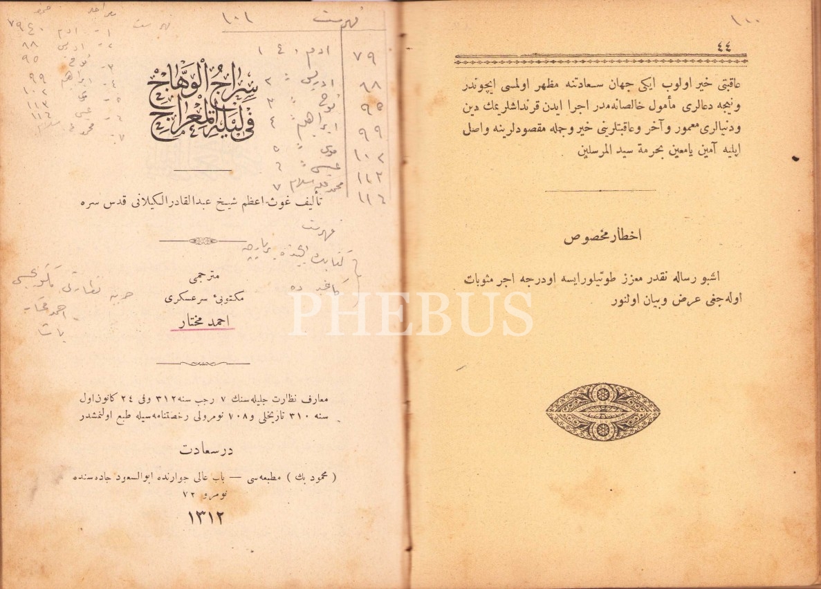 Osmanlıca 5 kitap bir arada: Mevlid-i Şerif, Dersaadet 1314, 24 syf.; Evsaf u Mu'cizat-ı Nebi [İkinci baskı], Ubeydi, Mahmud Bey Matbaası, Dersaadet 1313, 48 syf.