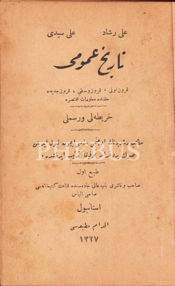 Osmanlıca Tarih-i Umumi [İlk baskı], Ali Reşad-Ali Seydi, mükafat cildinde, haritalı ve resimli, İkdam Matbaası, İstanbul 1327, 208 syf., 11x18 cm