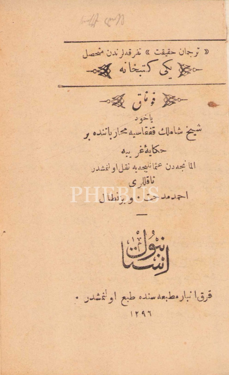 Osmanlıca Konak yahud Şeyh Şamil'in Kafkasya Muharebatında Bir Hikaye-i Garibe, Almancadan tercüme eden: Ahmed Midhat-Wiesenthal, Kırk Anbar Matbaası, İstanbul 1296, 354 syf., 10x14 cm